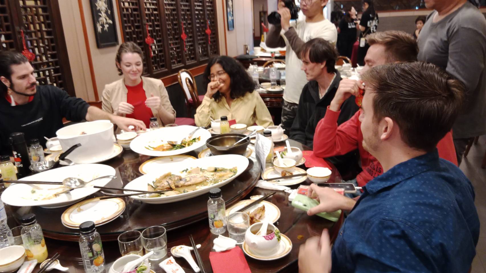 圖說:鄧師傅功夫菜年菜上桌,文藻外語大學國際學生幾乎掃光每盤菜。(圖片來源:韓文明拍攝)