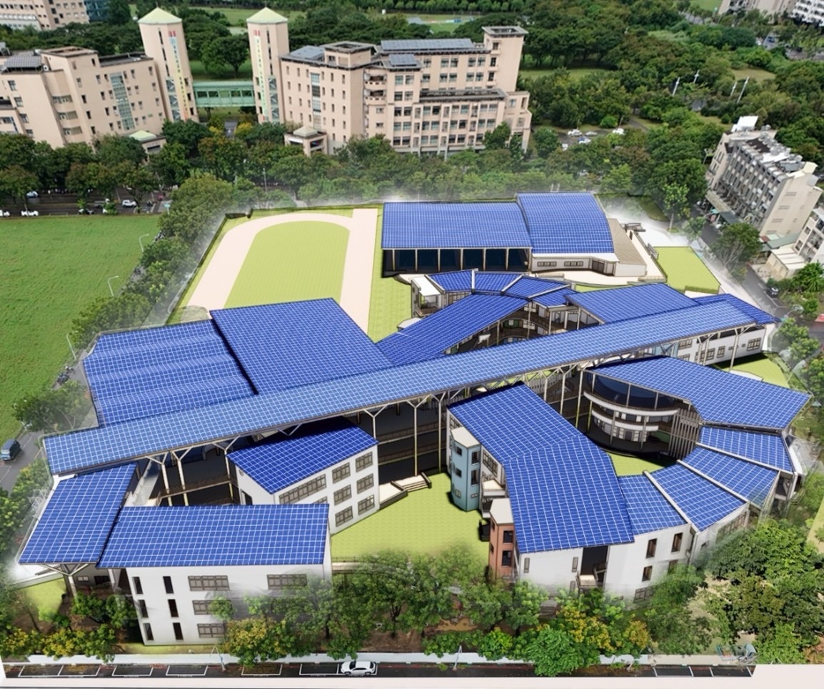 為因應台積電設廠需求所設「藍田國小新建校舍」,預計2026年開始招生提供教育服務。校舍規劃設計階段即納入太陽能設置並輔以建築美學,將太陽能設置使用最大化,自主供應學校所需用電,真正實踐低碳低耗能的永續校園。