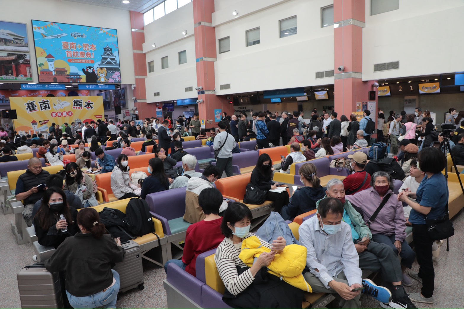 圖說:首航日台南機場湧現人潮,不少旅客期待透過直航展開更便利的日本旅程。(圖/台南市政府提供)