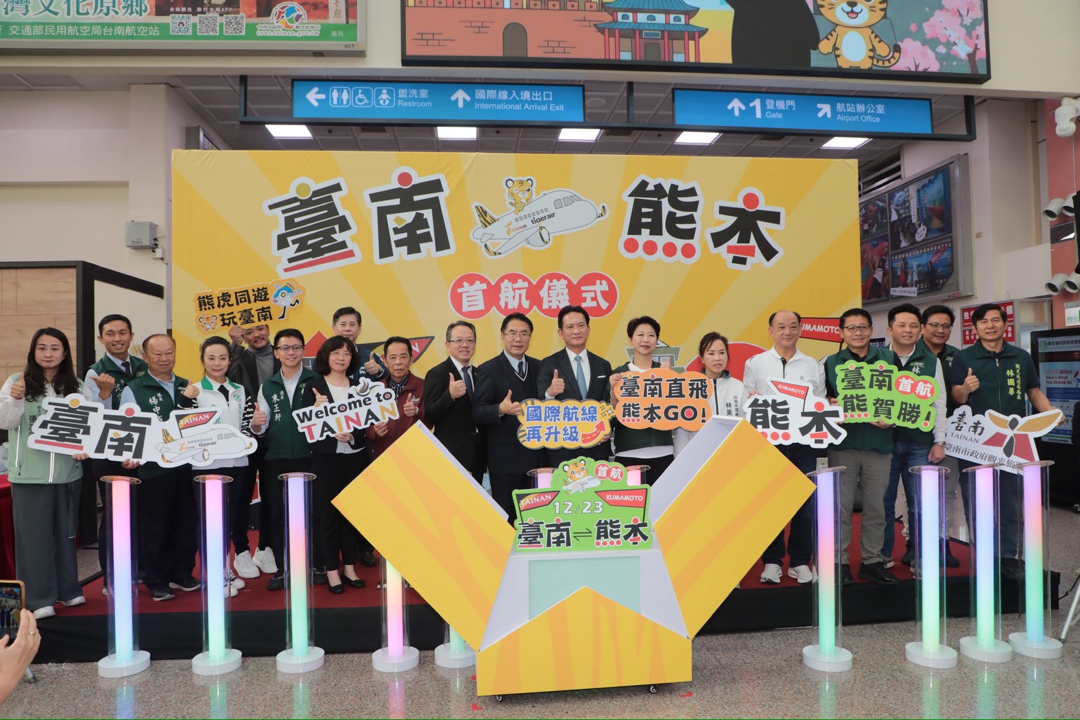 黃偉哲表示,台南—熊本是疫情後台南機場新增的重要國際航線,也是南部民眾直飛日本的關鍵門戶。航線每週二、五定期飛航,除提供約186萬大台南市民更便利的出國選擇,也服務嘉義、北高雄地區旅客,讓南台灣出入境更加便捷。