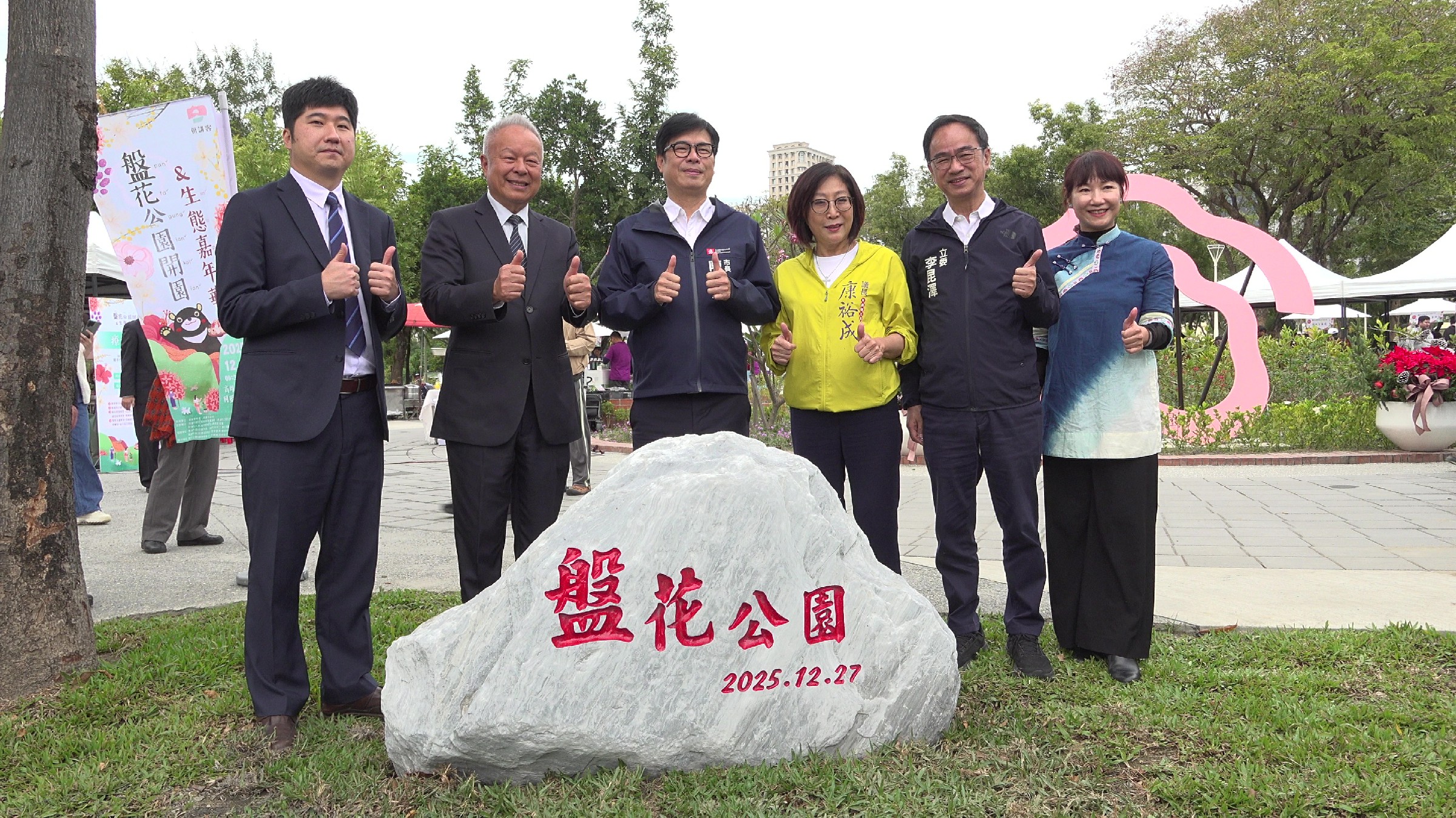 陳其邁表示,盤花公園以前身「三民一號公園」為基礎重新打造,設計融入客家盤花意象,並導入低維護、友善環境的綠化理念,不僅提供市民優質休憩空間,也成功將低碳、淨零概念落實於公共工程,讓公園成為都會中兼具文化與永續精神的新亮點。他並與市民一同走讀園區、品嘗客家特色美食,體驗盤花公園的多元魅力。