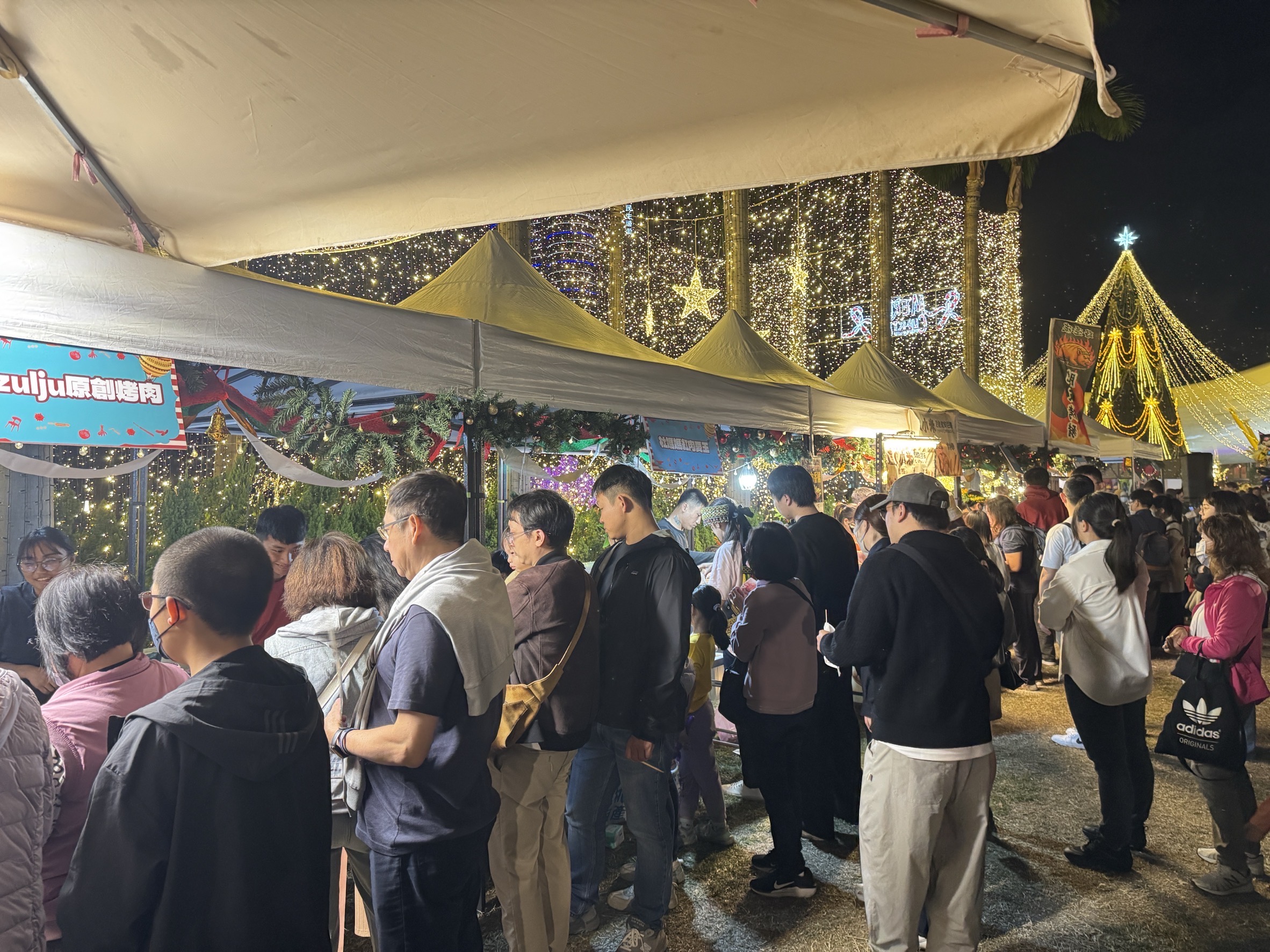 學文化、玩體驗、吃原味,高雄市原住民族部落大學114年度成果展暨族語推廣活動,12月28日晚間在高雄市中央公園熱鬧登場。現場集結課程體驗、市集與舞台展演,隨著聖誕燈飾亮起,人潮持續湧入,文化體驗區與美食攤位排起長龍,充分展現原民學習能量與多元成果。