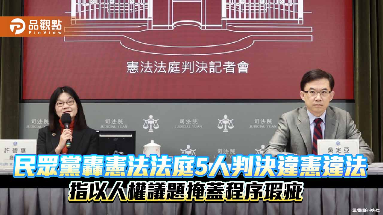 民眾黨轟憲法法庭5人判決違憲違法 指以人權議題掩蓋程序瑕疵