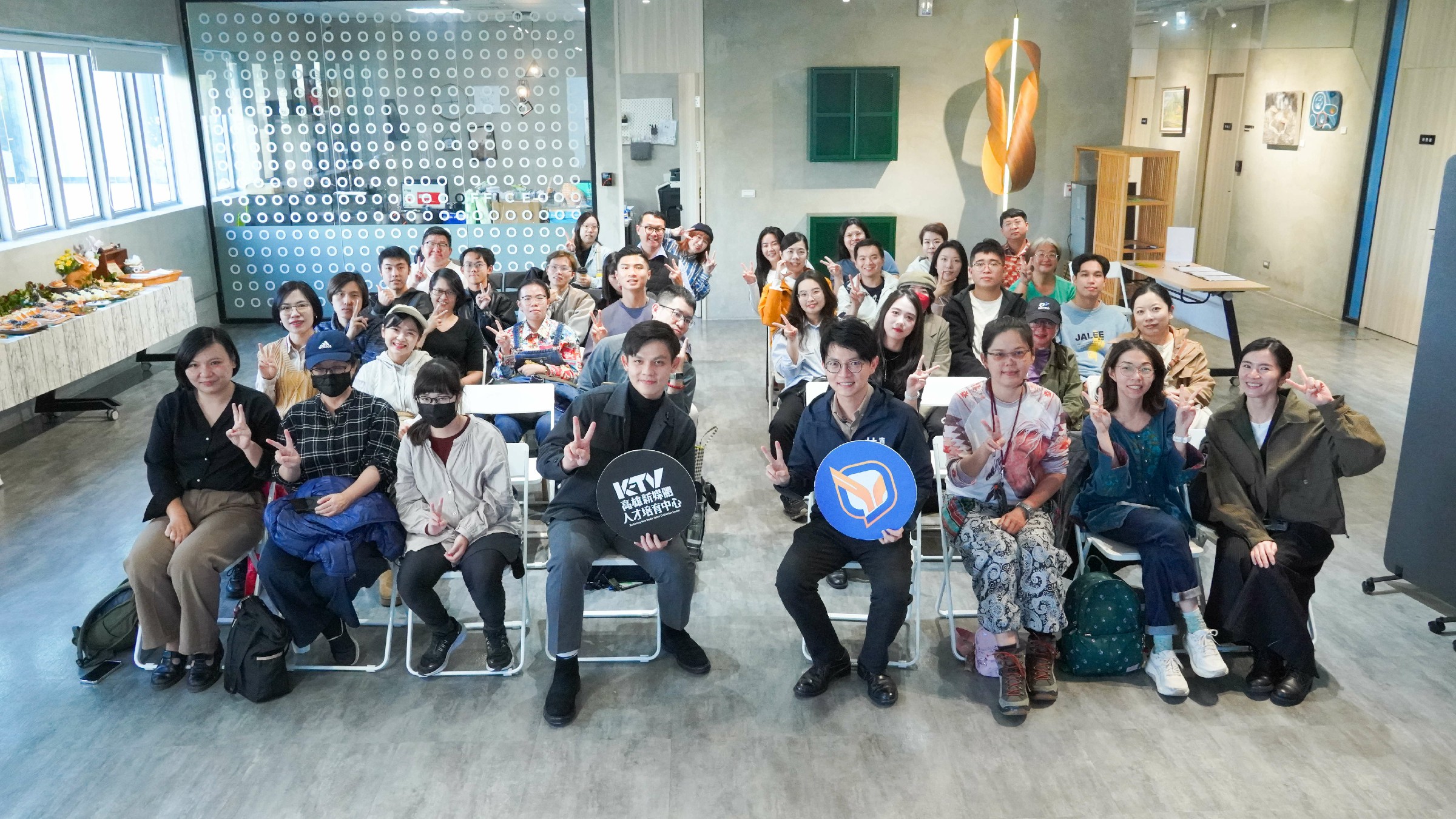 ↑圖說:「K-TV 高雄新媒體人才培育中心」打造高雄專屬的創作者孵化基地,自開辦以來已邁入第五屆,累計近千人報名、培訓近600名學員。圖為南臺科技大學黃瓊儀教師與同學前來新媒體中心參訪。(圖片來源:高雄市青年局提供)