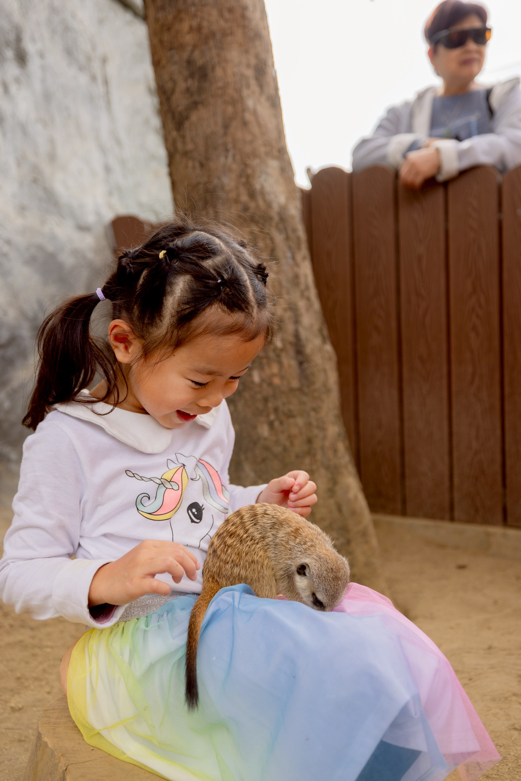 ↑圖說:小朋友與狐獴互動。(圖片來源:高雄市觀光局提供)