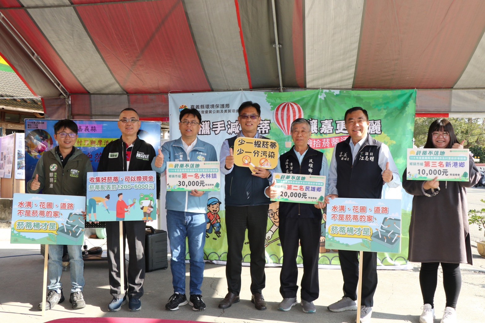 ↑圖說:環保局同步舉辦「嘉義縣各鄉鎮市及村里撿菸蒂競賽」,鄉鎮市組前三名由大林鎮、民雄鄉及新港鄉脫穎而出(圖片來源:嘉義縣環保局提供)
