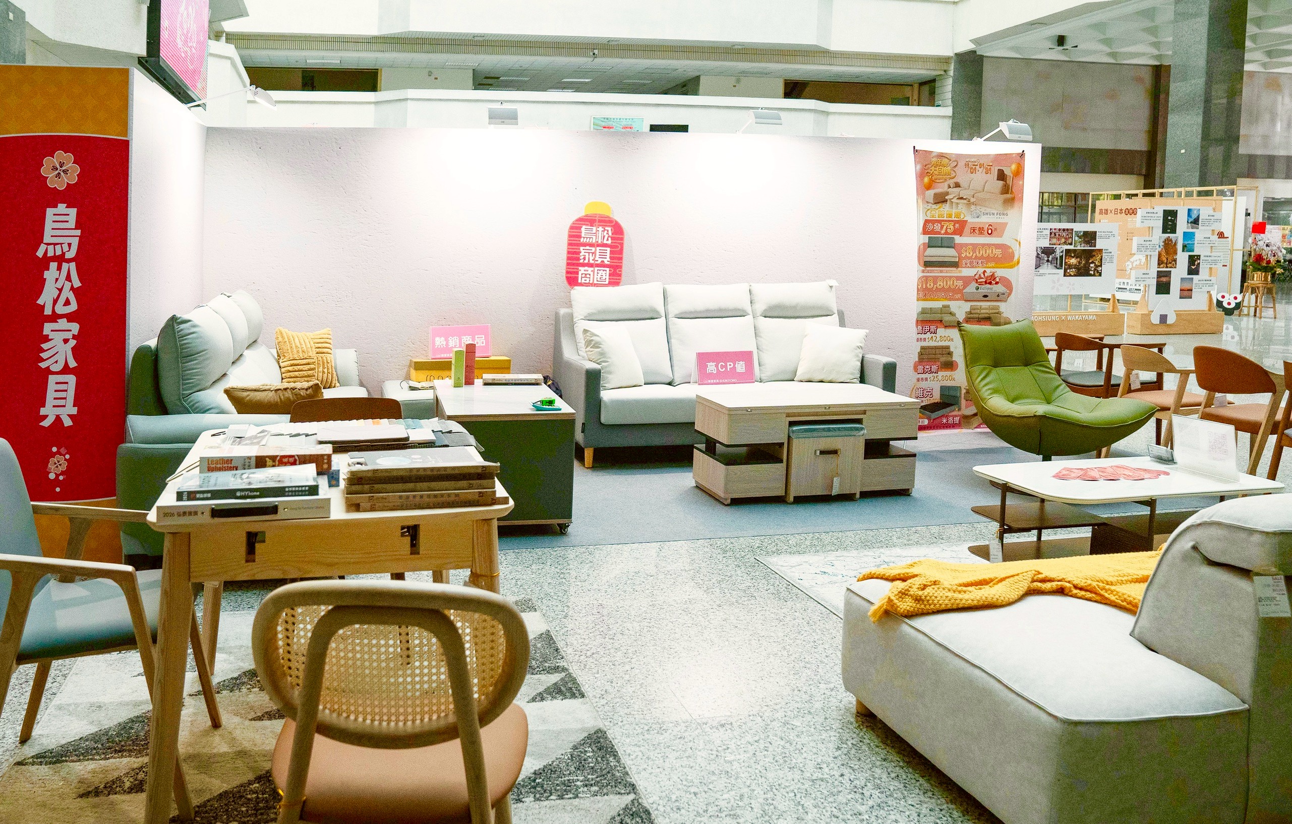 此外青年家具街與鳥松家具街更強強聯手,搶攻年前除舊佈新商機,從1月19日至23日上午8時至17時,在市府中庭設置「高雄過好年」家具展區,邀請市民朋友「馬」上換新居,並備有多重優惠好禮送不停,與各位市民朋友喜迎馬年吉利。