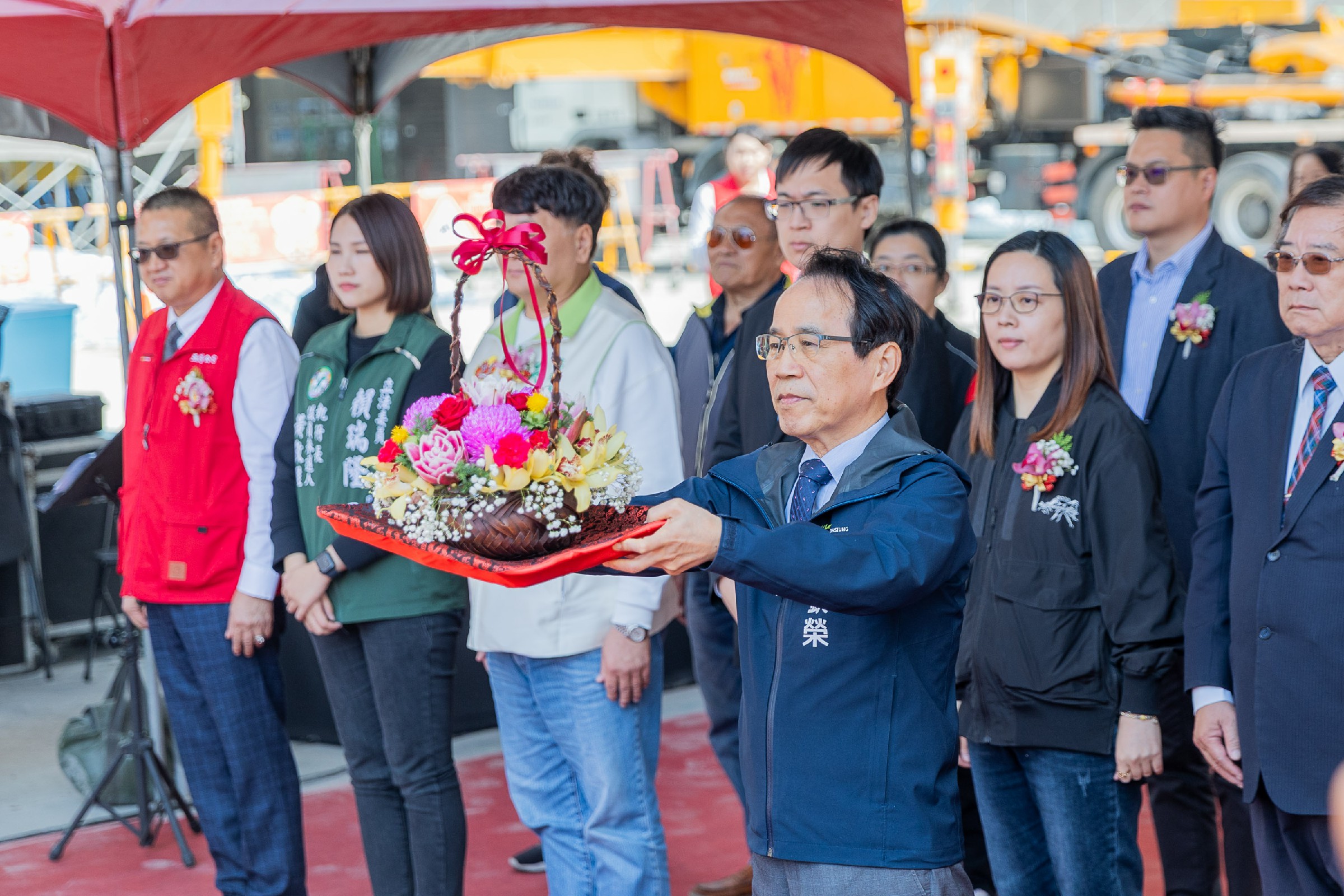 ↑圖說:高雄市副市長林欽榮主持前鎮亞灣智慧公宅(第一期)新建統包工程舉行上樑典禮。