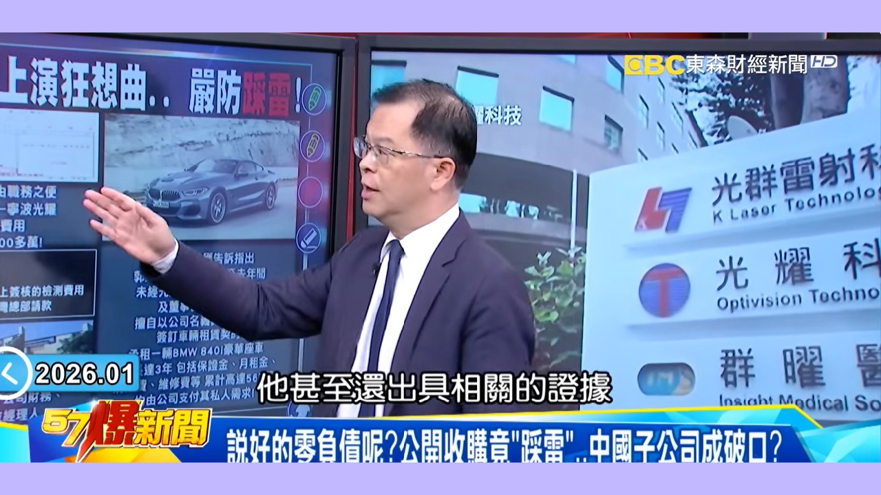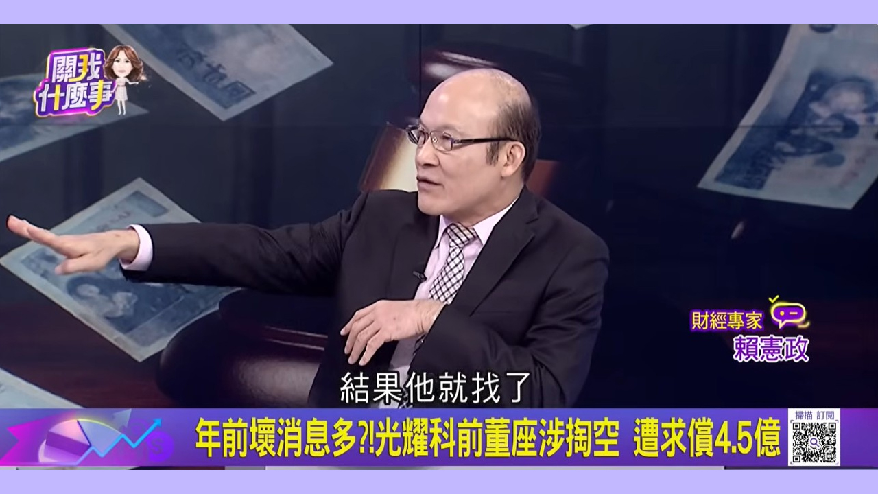 資深市場分析師賴憲政在《關我什麼事》節目中則聚焦交易結構指出,光耀科原母公司光群雷射出售持股時,契約載明標的公司無隱匿負債、無重大違法情事;併購交易過程,相關重大資訊是否真實且充分揭露,金融監理機關應依職責查明。他並指出,境外子公司支付高層主管的薪酬與稅費義務常被低估,「若交易前未揭露,實質就是隱性負債,最後由接手方埋單」。