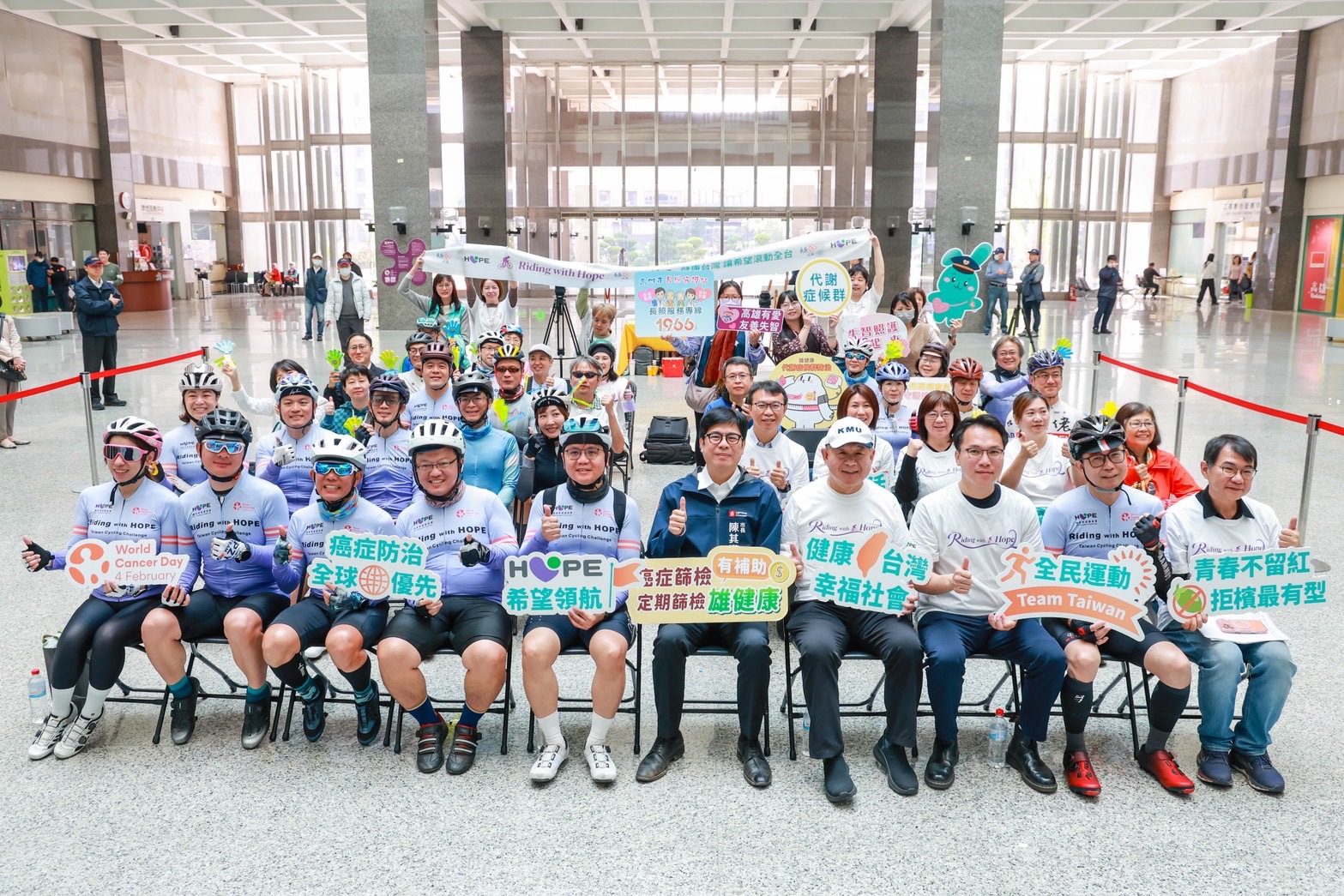 為響應2月4日世界癌症日,癌症希望基金會發起「北高400公里自行車行動」,號召百名騎士以實際行動傳遞防癌與健康促進理念。歷經近三天長征,車隊4日上午順利抵達終點高雄市政府,高雄市長陳其邁親自迎接並致意,肯定騎士們以堅毅意志完成挑戰,成功喚起社會大眾對癌症篩檢、防治及自我健康管理的重視。