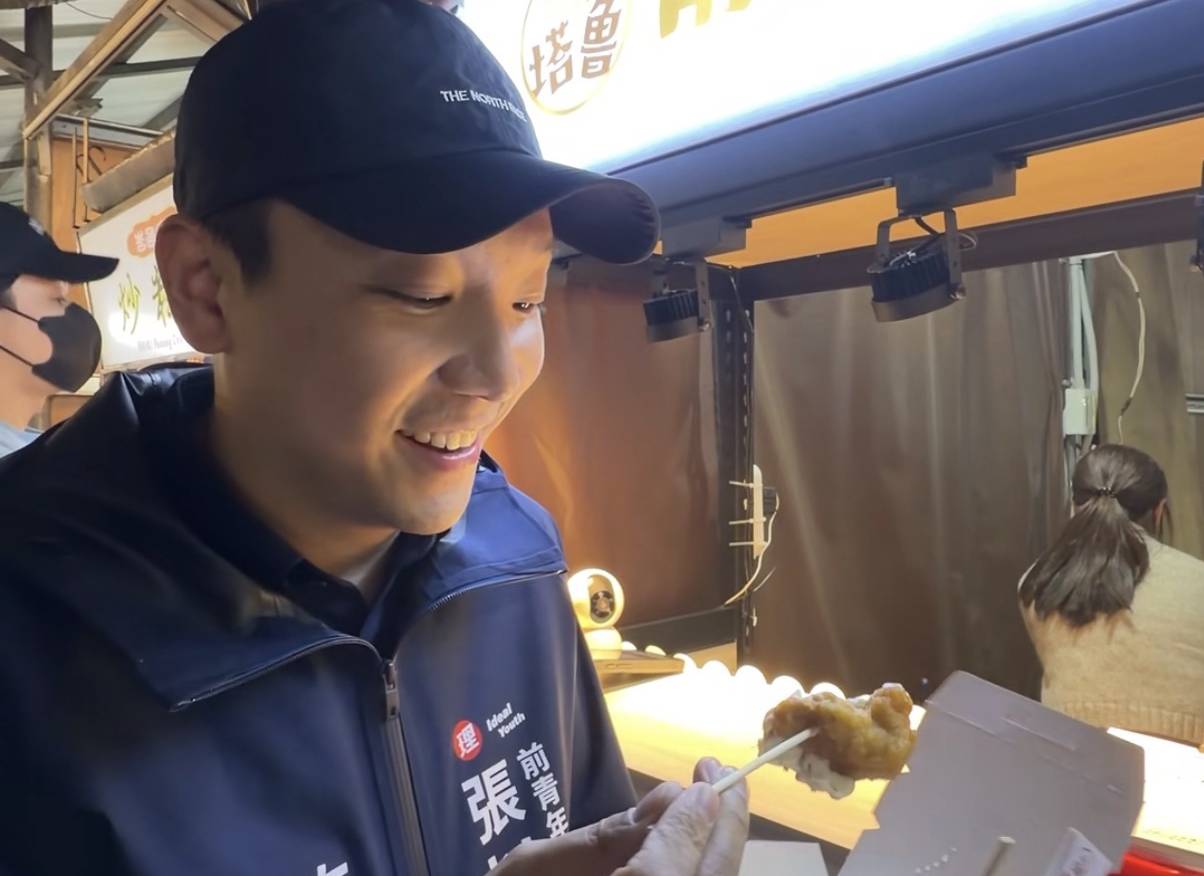 圖說:張以理大推瑞豐夜市的「塔魯南蠻炸雞專販所」。(圖片來源:張以理競選辦公室提供)