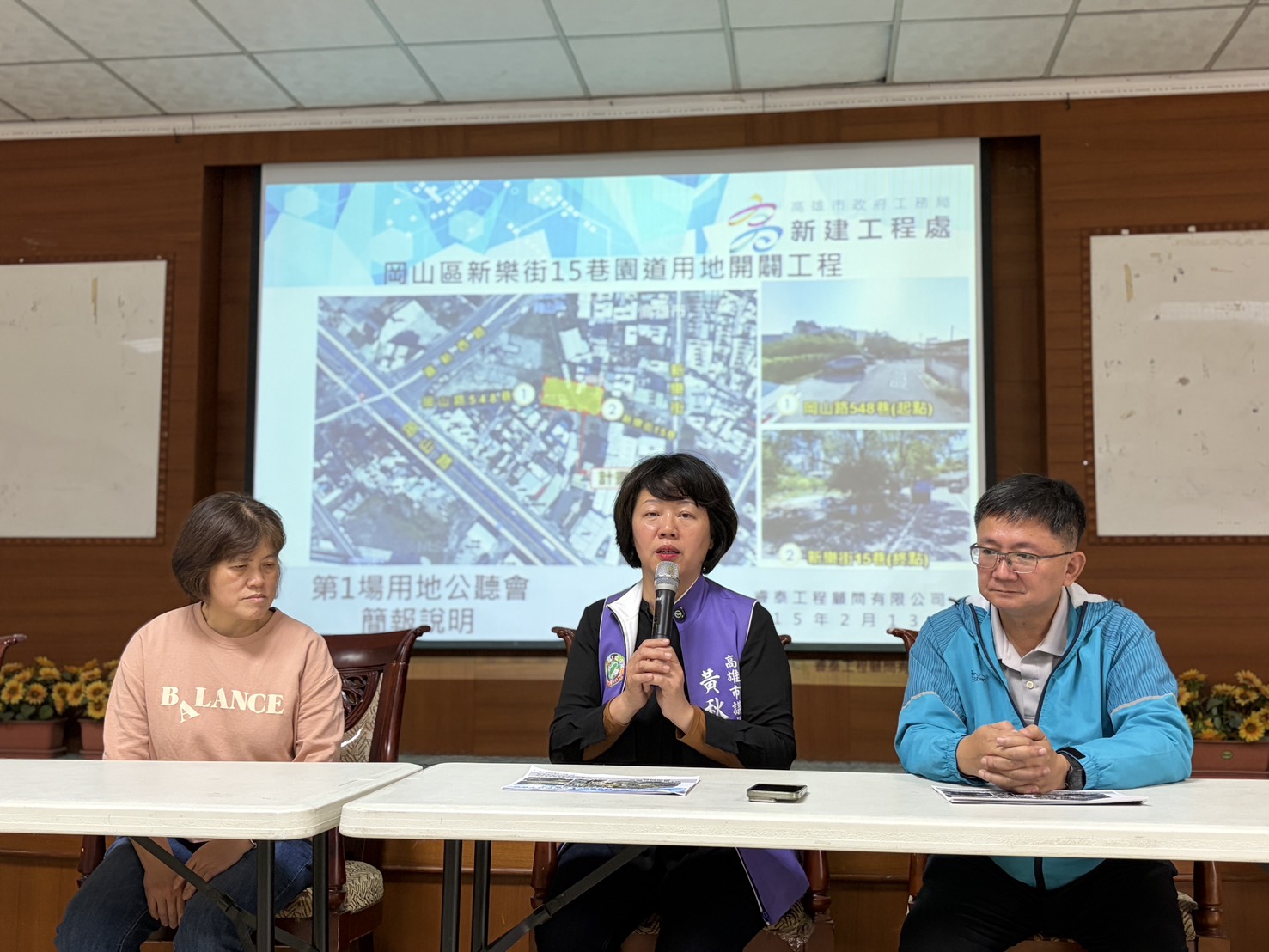圖說:黃秋媖13日在岡山區公所召開公聽會,成功爭取開闢新樂街15巷園道,改善危險路口。(圖片來源:黃秋媖服務處提供)