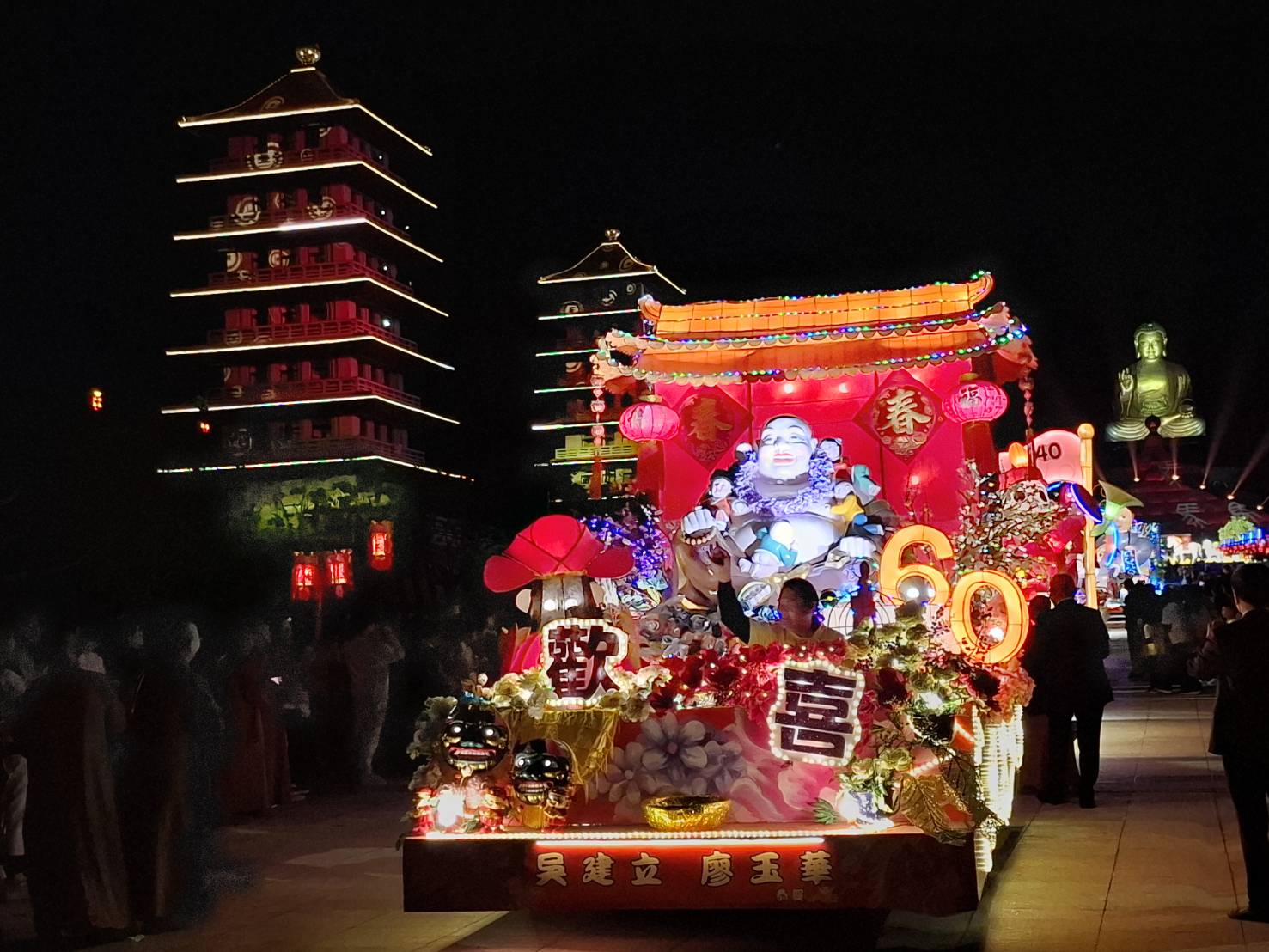 圖說:佛光山春節平安燈法會從2月17日起一連到3月18日,現場展出多台創意花車。(圖片來源:民眾提供)