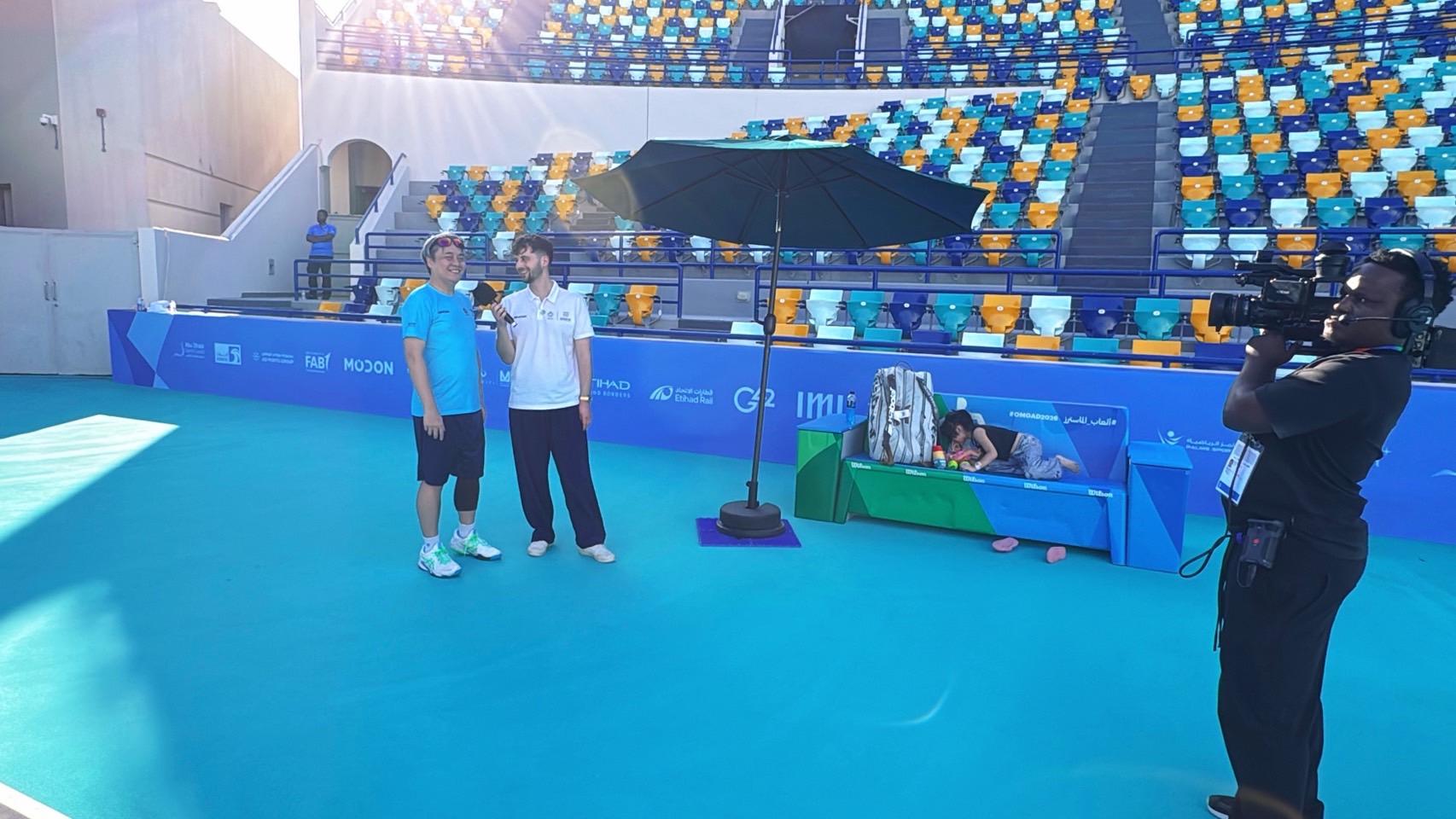 本屆賽事於阿布達比地標場館 Zayed Sports City 舉行。何星磊律師在男雙決賽中,與隊友迎戰西班牙組合。決賽開局即面臨嚴峻考驗,對手陣中一名選手近200公分,發球角度刁鑽、速度驚人、彈跳極高。何星磊律師賽後表示:「這是我第一次接近200公分長人的高速發球,球速快、彈跳高,一開始確實不習慣。」面對強勁攻勢,他迅速調整接發策略,從站位後移、縮短揮拍節奏,到改變回擊落點,逐步破解對手發球優勢。最終與隊友攜手完成關鍵破發,以6:4拿下決賽勝利,成功奪金。