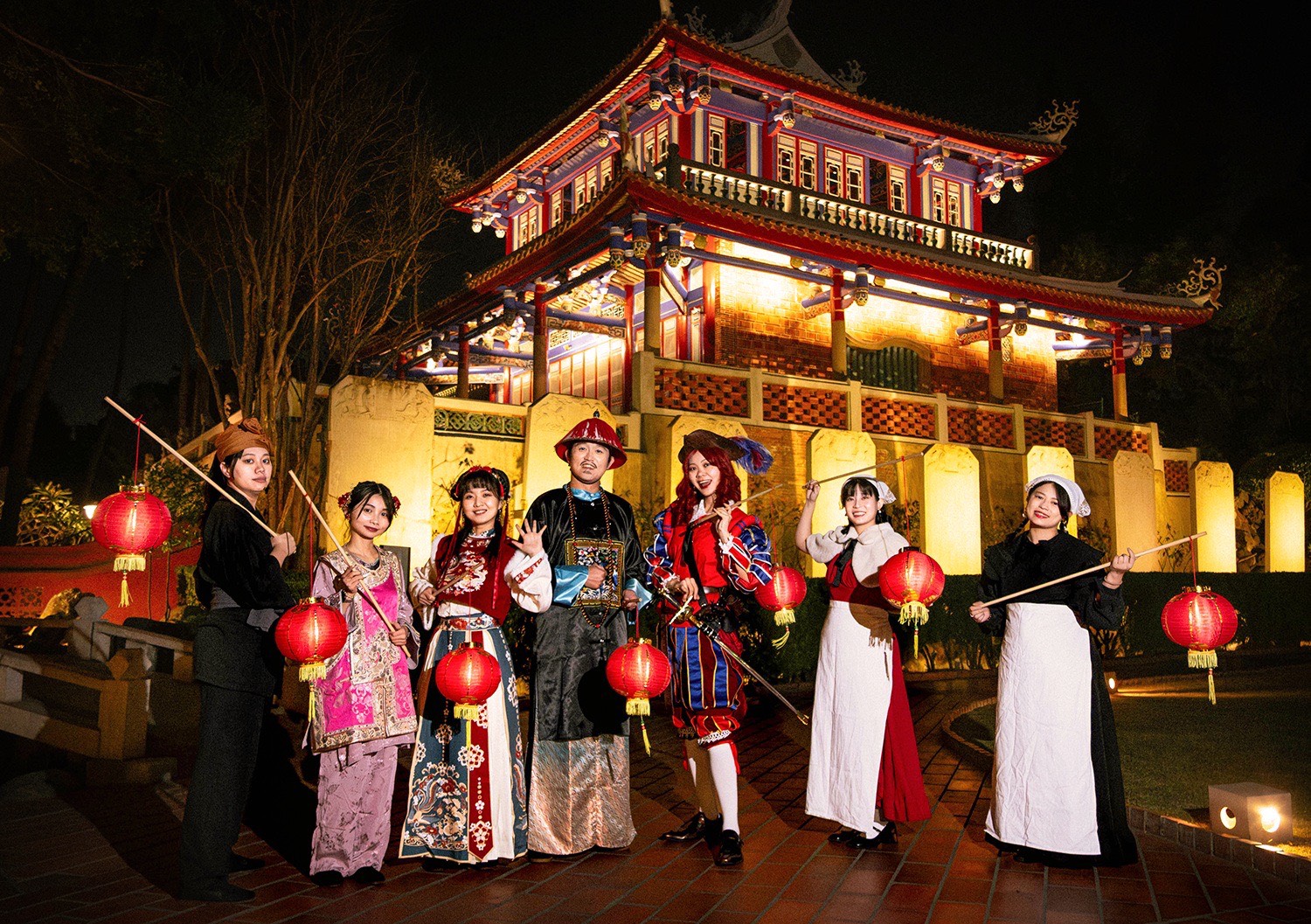 圖說:熱蘭遮市集於赤嵌樓夜間點燈登場,歷史角色扮裝帶領民眾沉浸式穿越古城迎元宵。(圖片來源/台南市文化局提供)