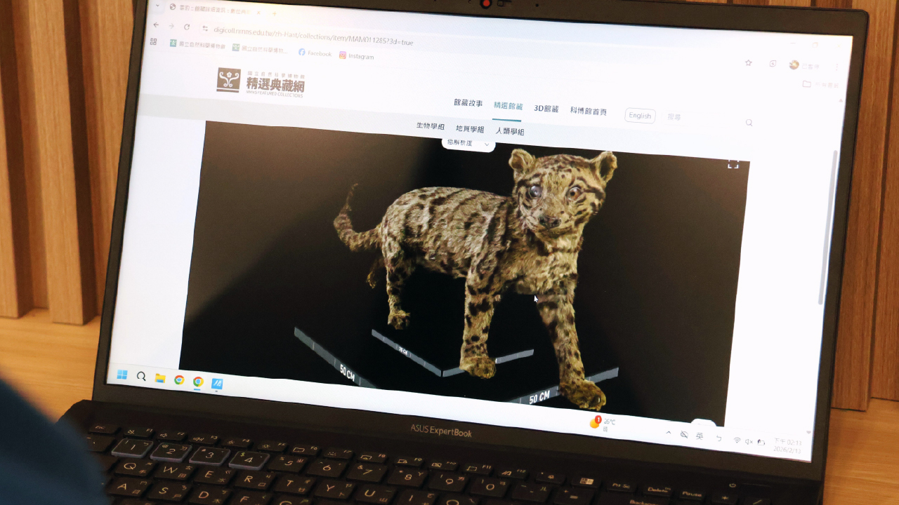 目前科博館已成功完成包括丹尼索瓦人化石、近百年歷史的台灣雲豹標本,以及多樣昆蟲與礦物等超過40件高難度數位典藏,並全數整合至「精選典藏網」。網站提供高精度的數位內容,無論是學術研究需要的高精度量測,或是單純的科普探索,都能在點選與滑動間完成。本計畫除了提供視覺饗宴,也是科博館實踐永續治理的重要指標,網站同步優化介面並通過無障礙AA標章認證,確保大眾能平等獲取知識,體現博物館推動知識平權的公共責任。
