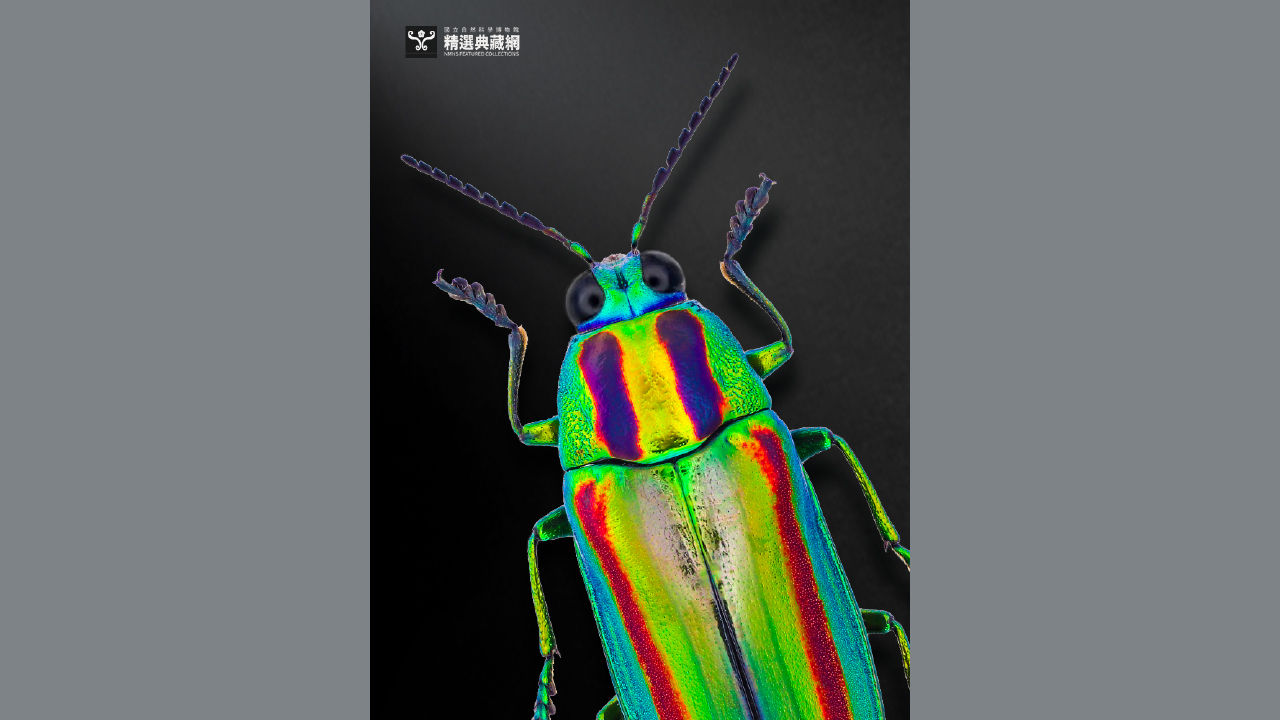 ↑圖說:透過精選典藏網,民眾在螢幕前旋轉模型時能看見「彩豔吉丁蟲」隨角度流動的幻彩光澤,細膩程度幾乎與實體標本無異。(圖片來源:國立自然科學博物館提供)
