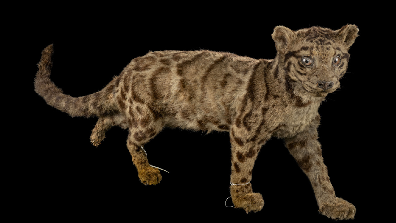 ↑圖說:科博館致力於打破物理限制,讓待在庫房的奇珍標本不再遙不可及,圖為消失百年的「台灣雲豹」。(圖片來源:國立自然科學博物館提供)