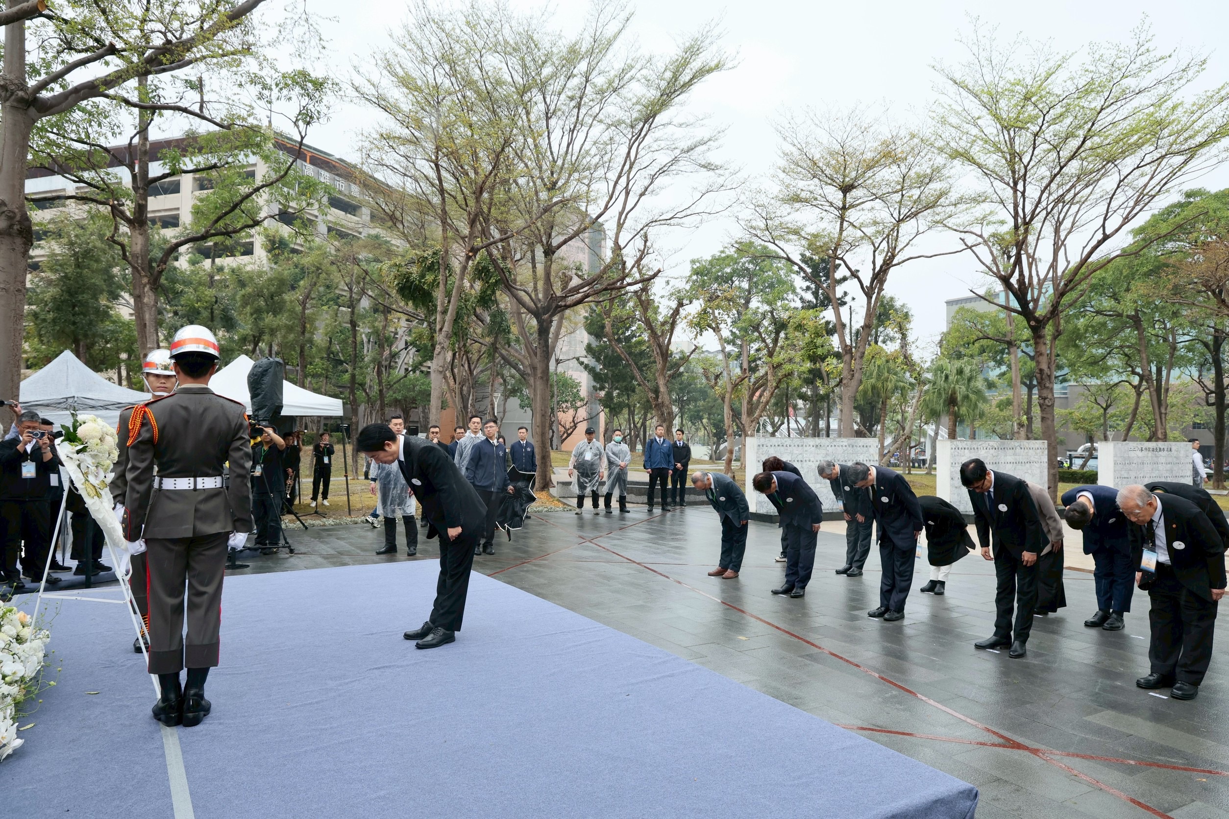 ↑圖說:賴總統一行人在紀念儀式結束後,前往高雄市二二八和平紀念公園獻花致意。(圖片來源:高雄市政府提供)