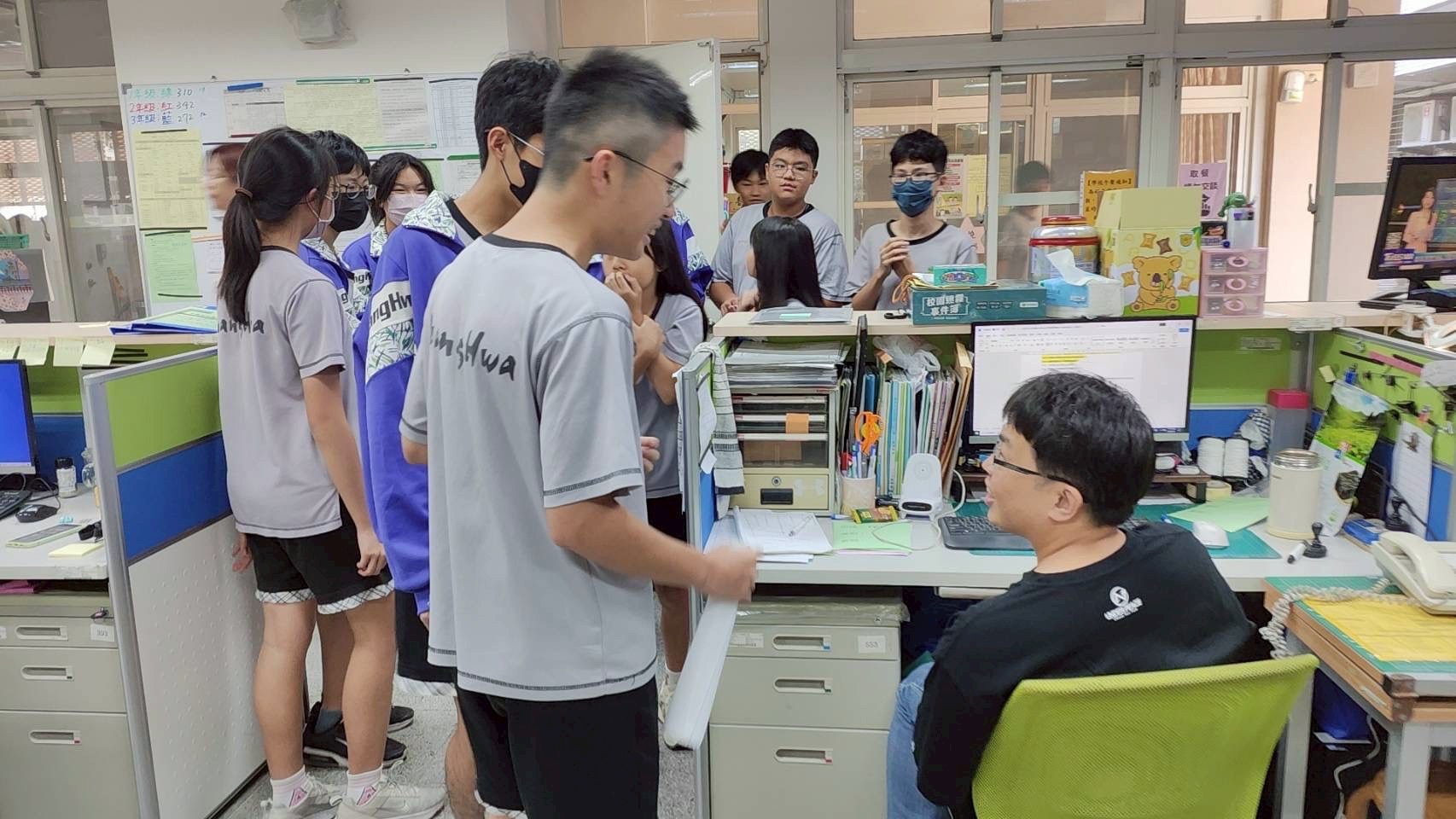 圖說:光華國中學生圍著創意燈謎一起討論謎底。(圖片來源:高雄市教育局提供)