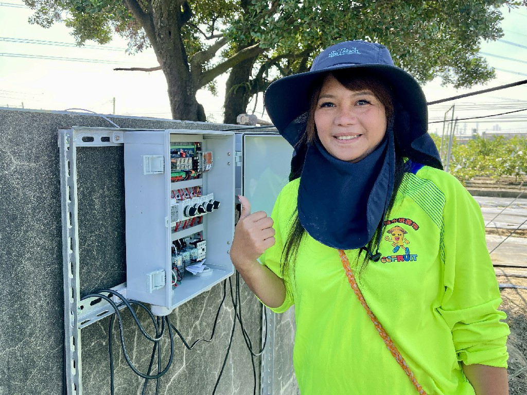 ↑圖說:阿蓮區淳階水果農場游雅淳農友導入智慧灌溉系統,省時省力完成灌溉工作。(圖片來源:高雄市農業局提供)