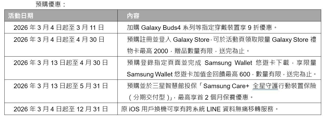 三星也公布了【Galaxy S26旗艦系列預購方案】