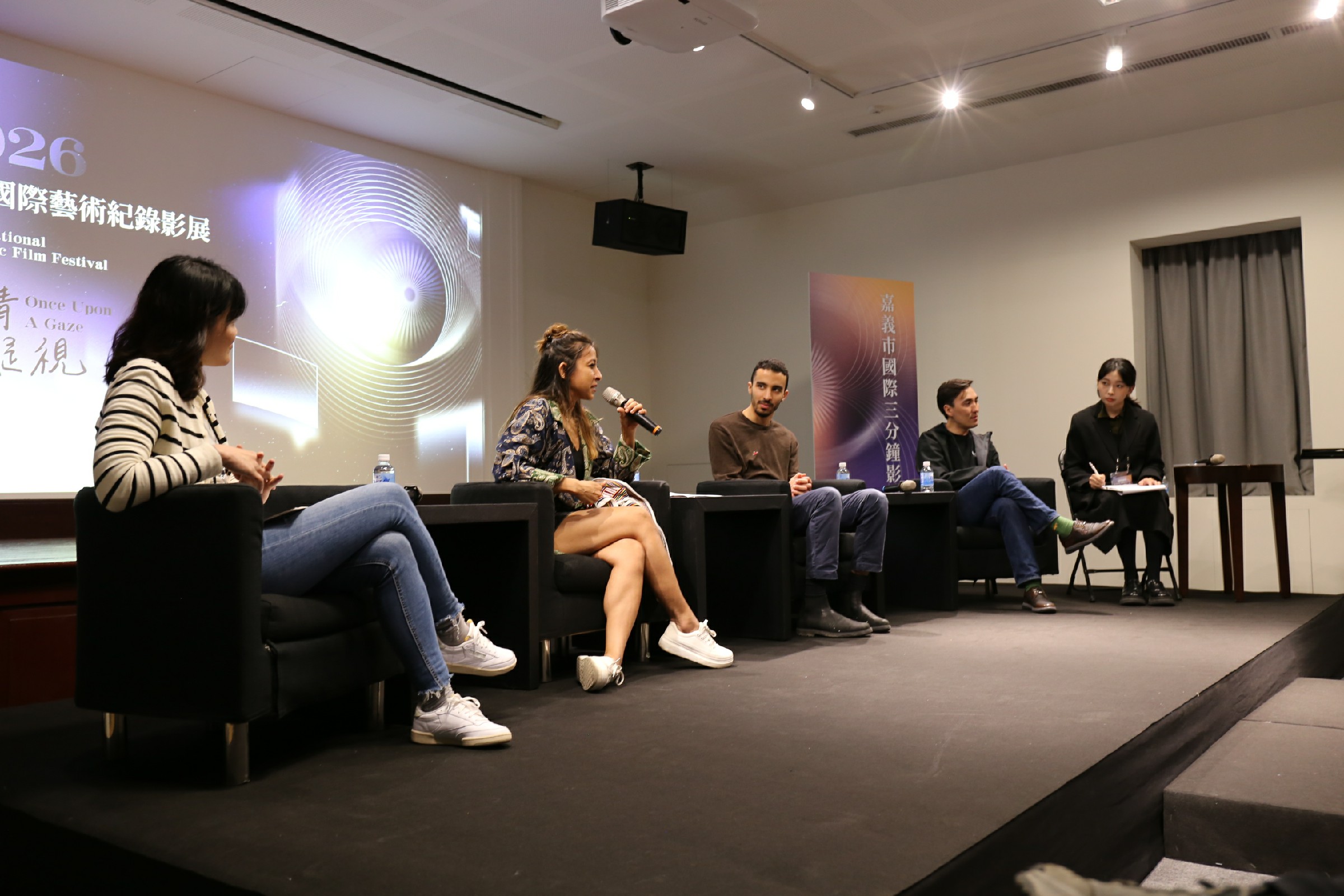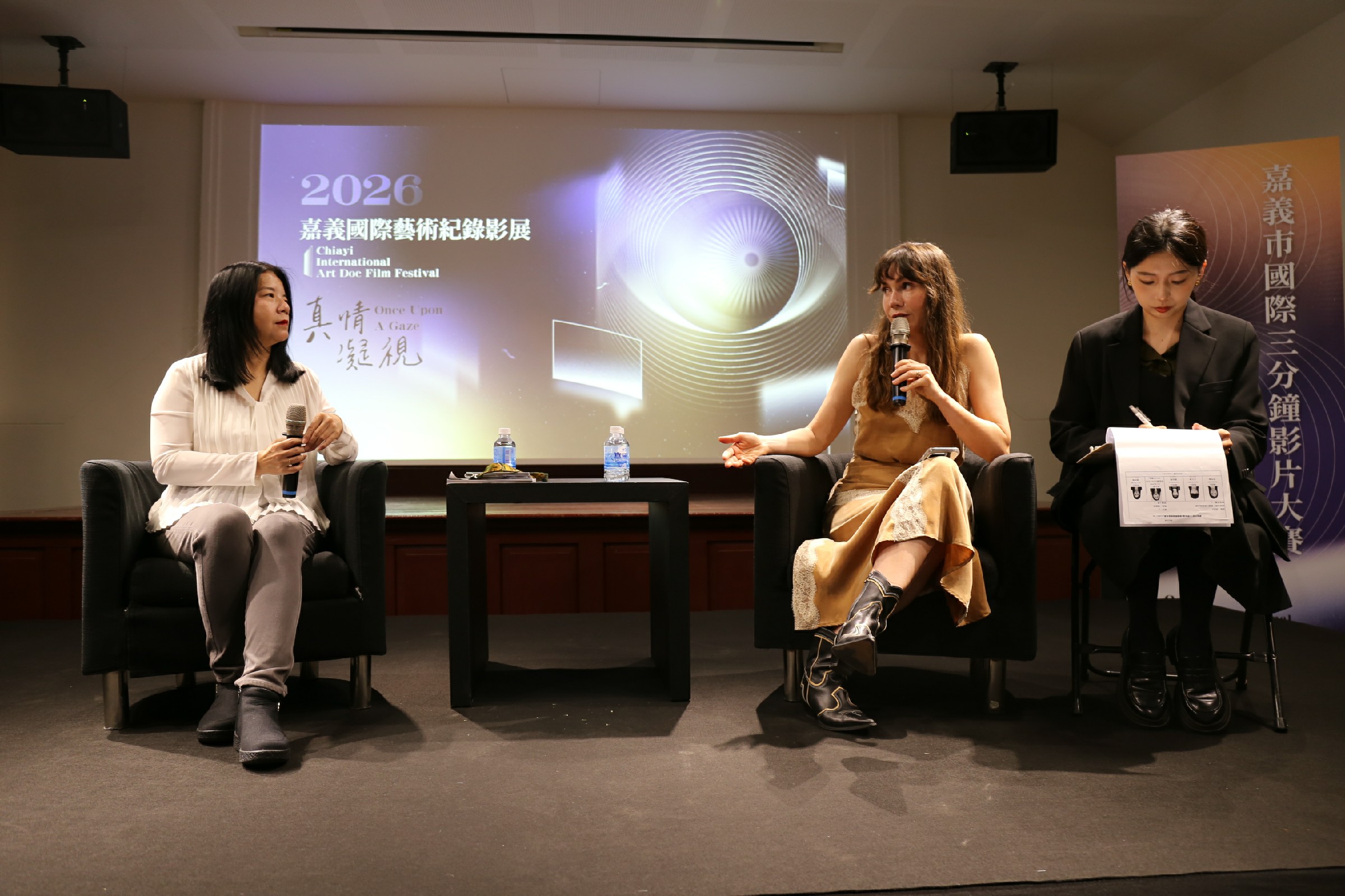 影展首日另一亮點為「嘉義市國際三分鐘影片大賽」特映及映後座談,邀請印度評審Yuki、金獎得主法國導演索菲安·舒艾卜(Sofiane Chouaib),以及銅獎得主薩哈共和國導演謝苗·阿瑪納托夫(Semyon Amanatov)與觀眾交流。評審Yuki表示,他在評選時特別重視作品是否能讓觀者由內而外產生深刻感受,其中伊朗創作者在戰爭背景下所呈現的影像力量尤為震撼。索菲安則分享,他在作品中捕捉巴黎城市節奏與光影變化,希望營造出時間彷彿暫停的神祕感;謝苗則以家鄉薩哈共和國的馬匹、牧人與老鷹等日常景象為創作題材,並透露正積極拍攝長片,希望在全球暖化改變地貌之前,留下家鄉最真實的影像記錄。
