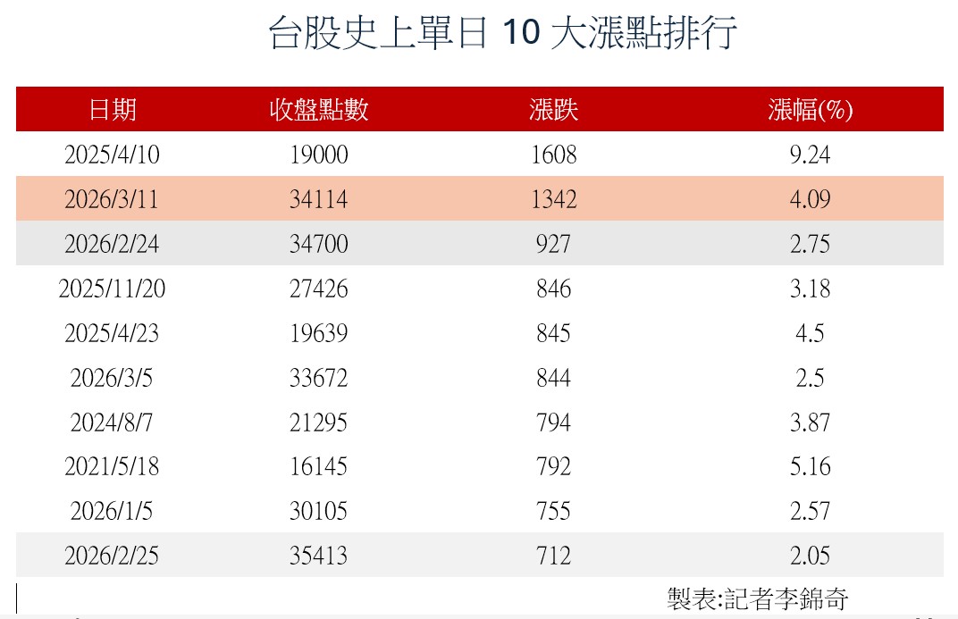 台股飆史上次高收盤漲點1342!一表掌握前10大紀錄 法人這樣說