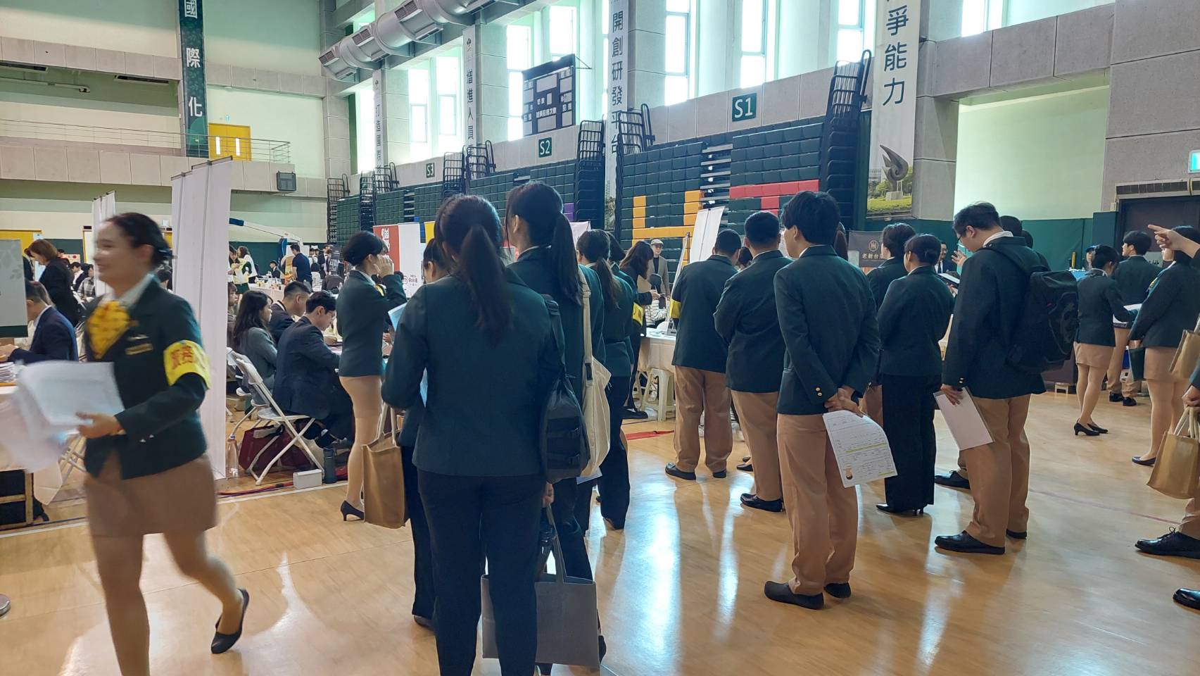 ↑圖說:國立高雄餐旅大學舉辦的實習媒合活動中,共吸引115家,開出共計3897個實習職缺,到學校面試實習生。(圖片來源:記者 賴君欣 拍攝)