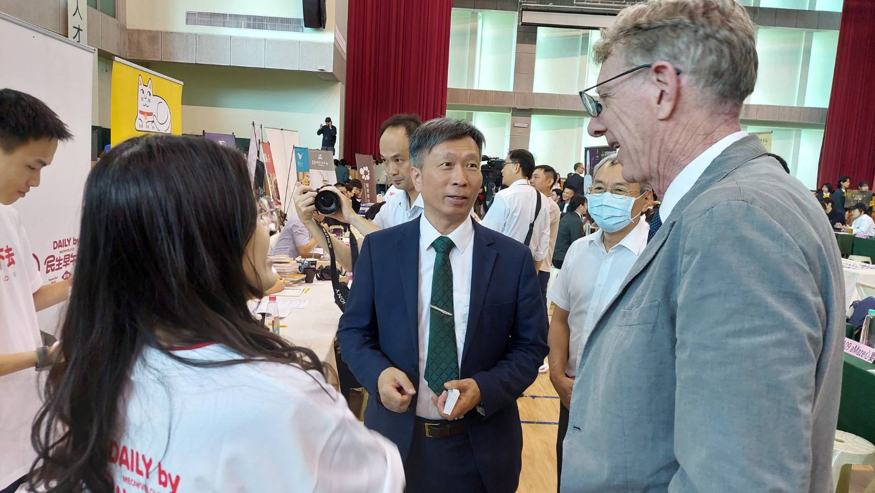 ↑圖說:高餐大校長方德隆(中間身著深色西裝者)認為新世代的年輕人看重的不只是薪水,還有職涯前瞻性。(圖片來源:記者 賴君欣 拍攝)
