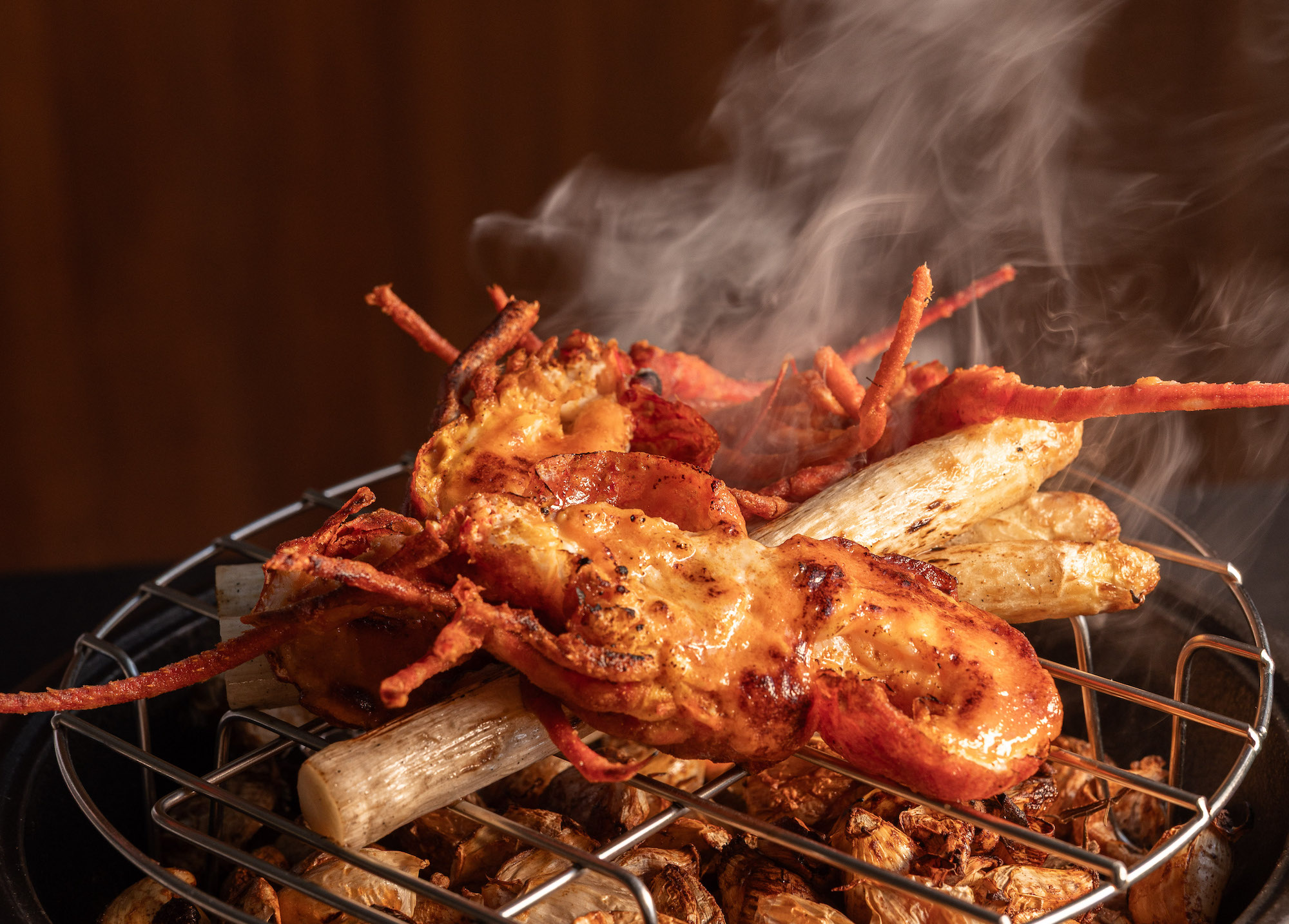 ↑圖說:Ukai-tei鐵板燒「軟殼龍蝦.大蒜美乃滋」酥脆外殼與彈嫩龍蝦肉形成鮮明對比,蒜香、海味與蘆筍清甜層層交織。(圖片來源:然一酒店提供)