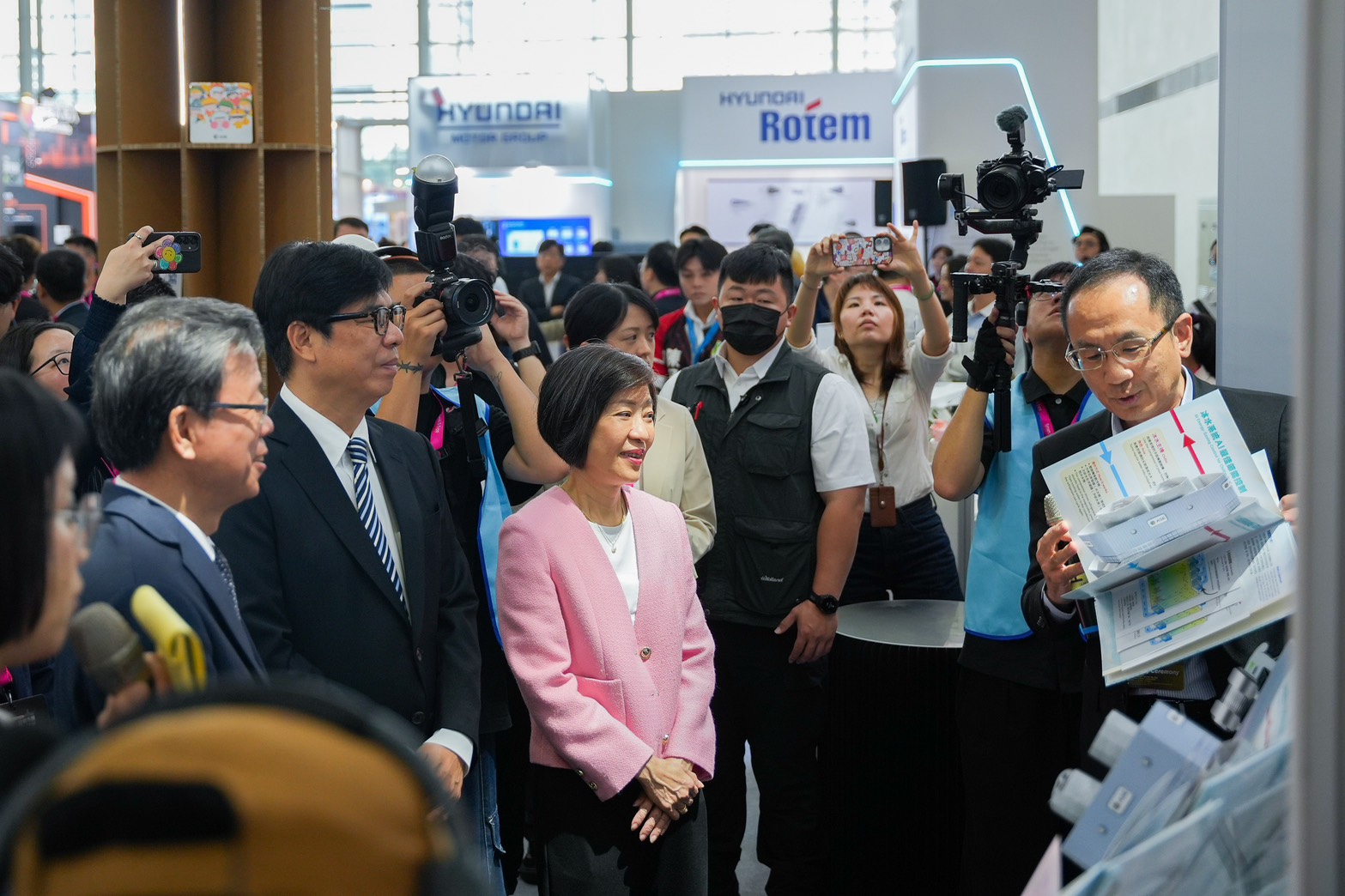 圖說:日月光於高雄「智慧城市展」展現其綠色轉型成果,高雄市長陳其邁特別前往觀展。(圖片來源:日月光提供)