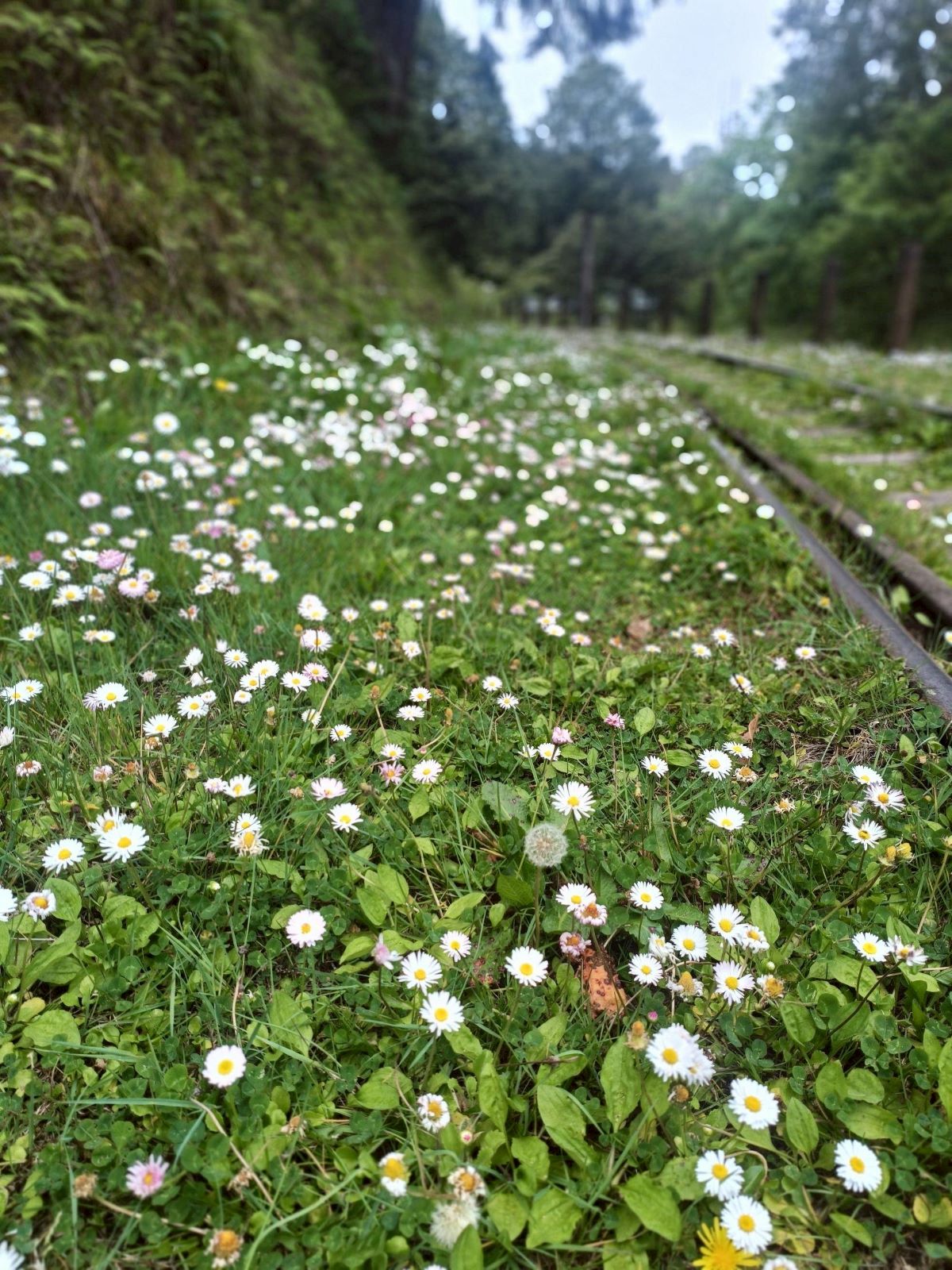 ↑圖說:水山支線舊鐵道旁雛菊盛開(圖片來源:資料照片/阿里山賓館提供)