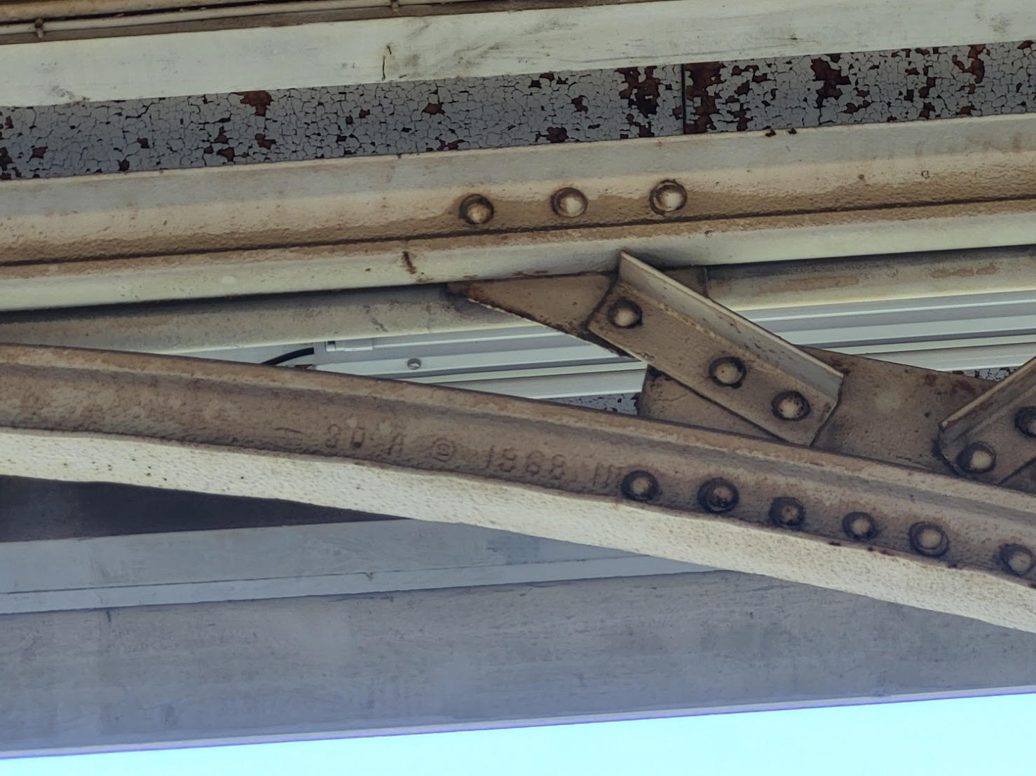 圖說:台南火車站第二月臺以鋼軌構成的雨棚,於鋼軌上留下1920年之年款,為台灣罕見40磅級綱軌彎折技術工法。 (圖片來源/台南市文化局提供)