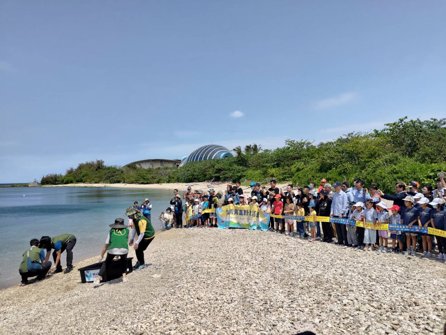 ↑圖說:海洋委員會海洋保育署26日上午攜手海巡署、國立海洋生物博物館,在在屏東後灣沙灘舉辦海龜野放活動。(圖片來源:海洋保育署提供)
