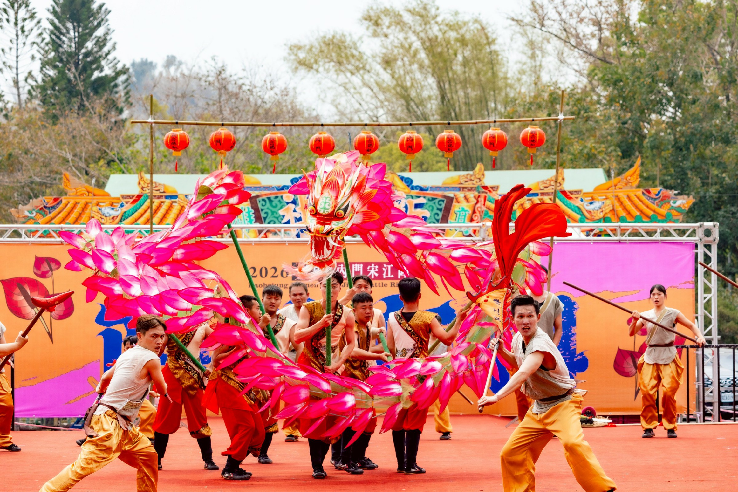 2026「全國創意宋江陣頭大賽」3月28、29日於內門紫竹寺熱鬧舉行初賽,來自全台11支隊伍同場競技,透過武術底蘊結合創意表演,展現傳統藝陣的多元風貌。經過兩天激烈比拚,最終選出7支隊伍晉級決賽,將於4月4日爭奪冠軍及80萬元獎金。