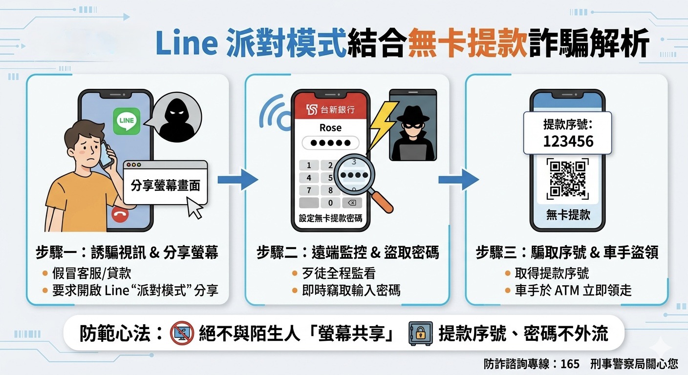臺北市一名女性蔡姓上班族,日前於社群平臺Threads瀏覽貼文時,見標榜贈送熱門手機之訊息,遂依指示加入LINE聯繫,並依對方說明透過「全家賣貨便」方式進行交易。過程中,對方再以「賣家帳號遭封鎖」為由,要求配合進行實名認證及金流相關操作,並陸續引導進行網路匯款、轉帳、行動支付、消費扣款及無卡提款等程序。被害人於不疑有他情況下依指示操作,最終遭詐騙金額高達新臺幣400萬餘元,其中轉帳金額逾新臺幣340萬餘元,遭詐團消費扣款約新臺幣20萬餘元、無卡提款約新臺幣37萬餘元,損失慘重。