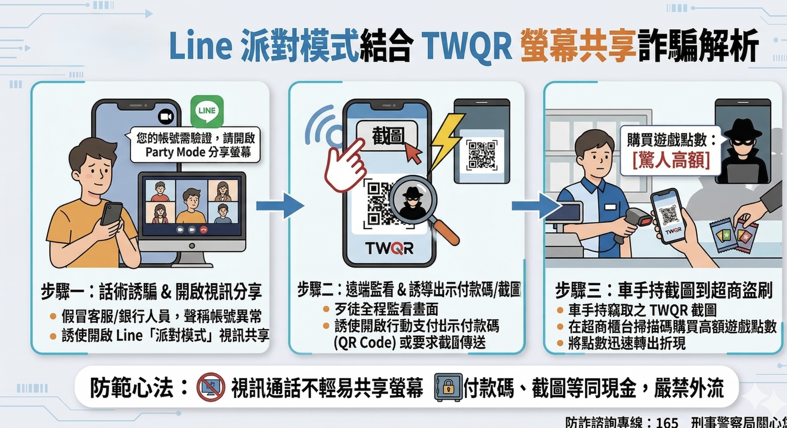 刑事局提醒民眾,網路購物務必透過正規平臺,切勿私下交易或配合不明金流操作;如遇要求加入LINE私聊,或以「金流驗證」、「帳戶設定」、「解除限制」等名義指示操作匯款、付款碼、QR Code或無卡提款功能時,均應高度警覺。另請相關遭偽冒之超商業者,協助強化防詐宣導及風險提醒機制。民眾如有疑問,可撥打165反詐騙專線,或透過165打詐儀錶板查詢相關案例,共同防制詐騙。