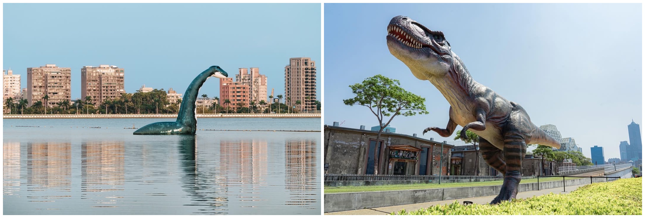 ↑圖說:除了衛武營草地外,在澄清湖與駁二也有設置恐龍打卡點。(圖片來源:高雄市教育局提供)