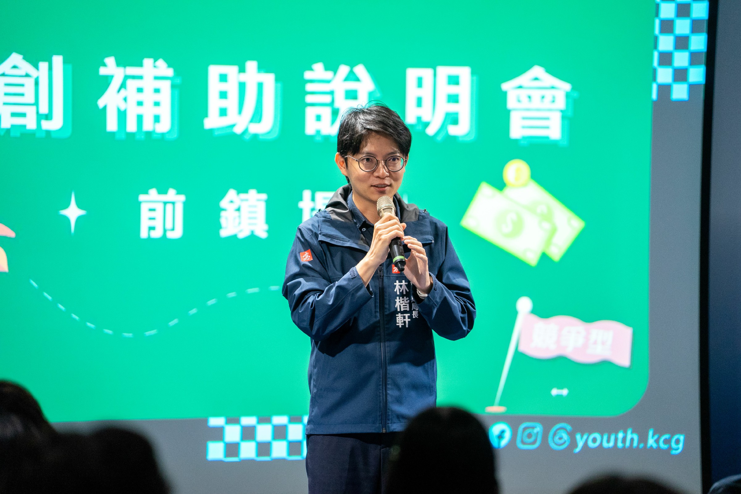 ↑圖說:高雄市青年局長林楷軒於前鎮亞灣新創園場次致詞時表示,青年局致力擔任「創業最強陪跑員」,透過全高雄巡迴說明會,將補助資源直送第一線。(圖片來源:高雄市青年局提供)