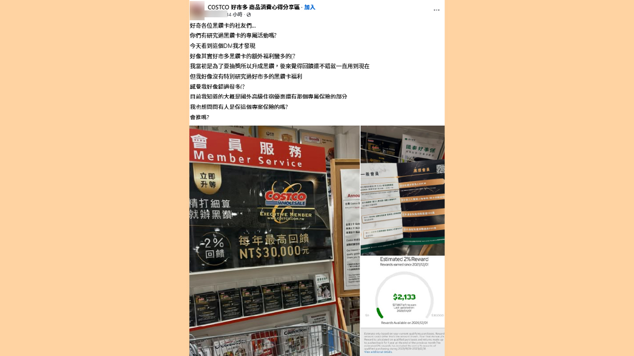好市多(Costco)黑鑽卡究竟有哪些隱藏福利?近日一篇社群貼文掀起熱烈討論,不少持卡會員坦言,當初升級黑鑽卡多半是為了抽獎或享有更高回饋,卻未曾深入研究專屬權益,直到親身對照才驚覺自己錯過許多優惠。