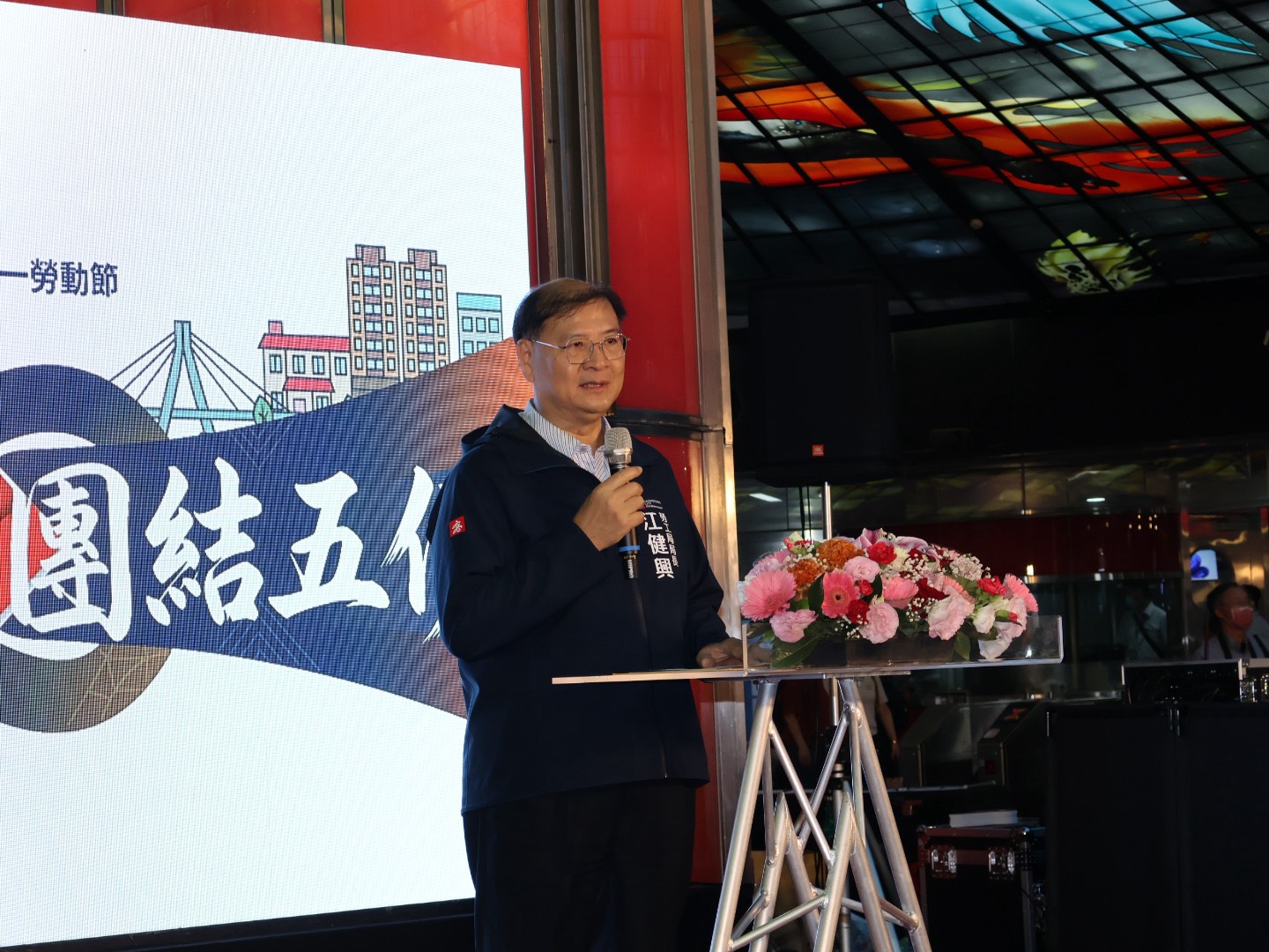 圖說:江健興感謝勞工朋友長期為高雄的城市發展打拚、付出心力。(圖片來源:高雄市勞工局提供)