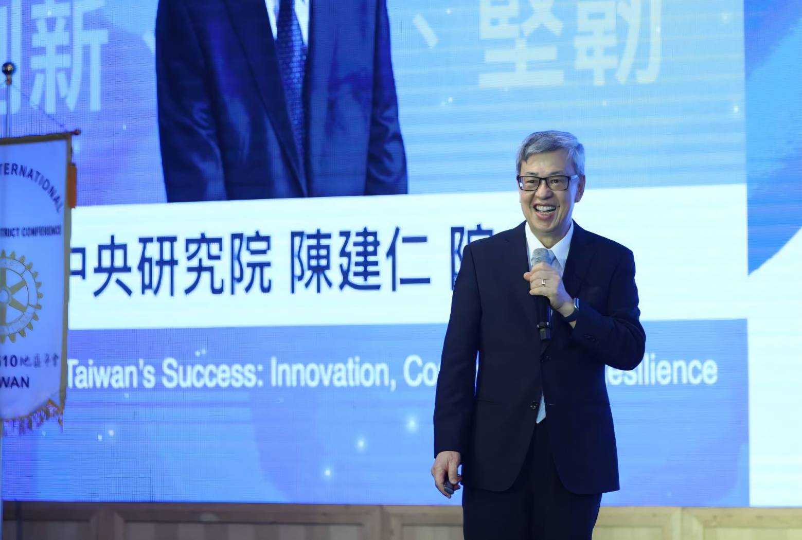 圖說:前副總統陳建仁出席國際扶輪3510區年會,進行專題演講。(圖片來源:主辦單位提供)