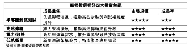 摩根資產管理指出,推升大盤的主力正是半導體、電源、散熱與高功率傳輸等四大科技板塊,反映產業技術持續進化與全球需求強勁。