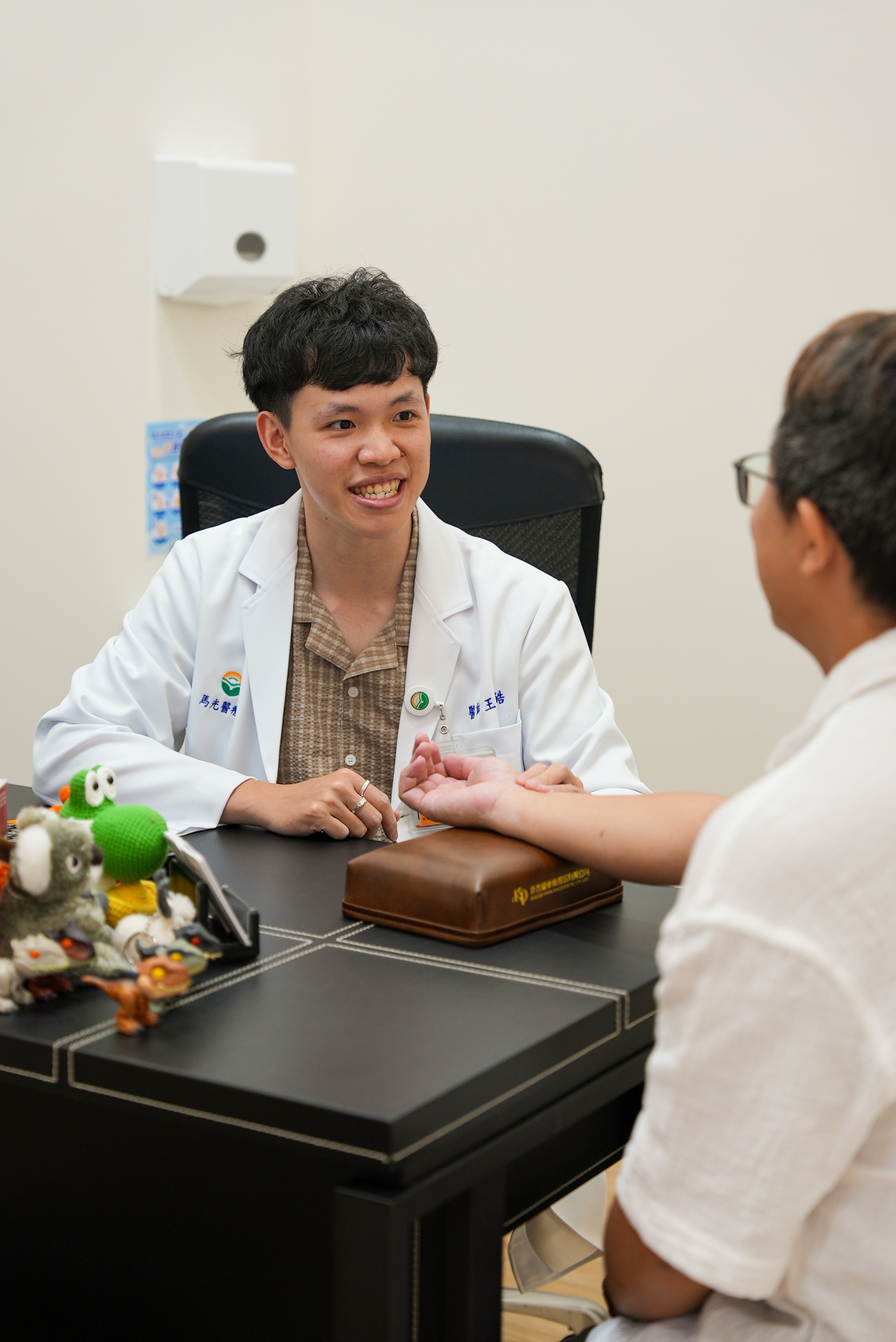 ↑圖說:崇德馬光王垣皓院長細心問診,陪伴民眾調理體質,展現專業醫療服務。(圖片來源:馬光中醫提供)