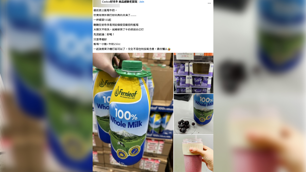根據臉書社團「Costco 好市多 商品經驗老實說」的熱門貼文,一名消費者表示長期鍾愛藍莓牛奶,卻苦於市售現打飲品價格偏高。在好市多發現熱銷冷凍藍莓後,以其顆粒飽滿、免洗即用的特性為由入手,搭配鮮奶自行調製。製作方式相當簡便:取適量冷凍藍莓與250cc鮮奶,直接放入果汁機攪打即成,無需額外加水或其他配料。