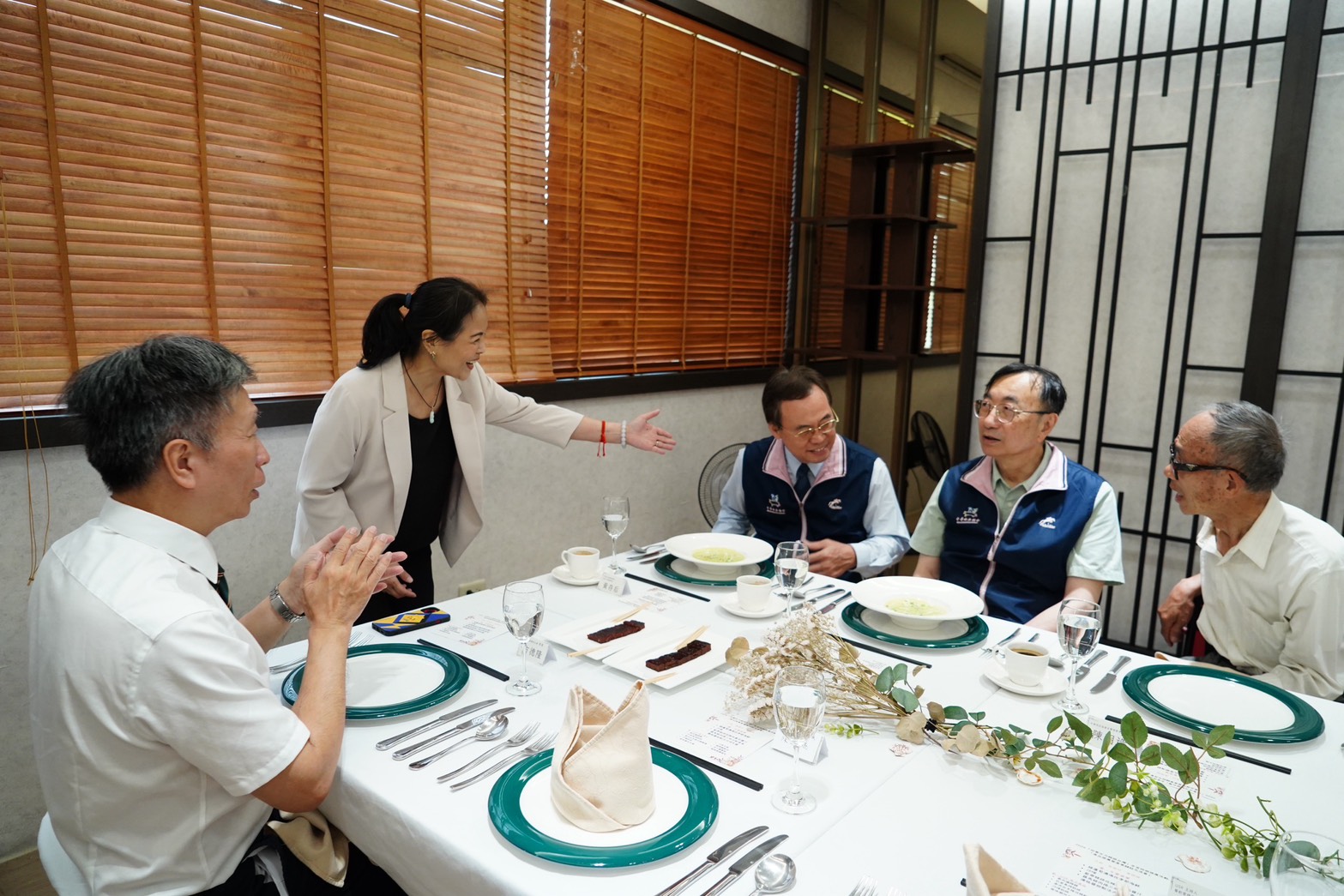 ↑圖說:田寮計畫團隊主持人吳淑華副教授,與方德隆校長及社團法人中華肉品協會貴賓相談甚歡,現場交流熱絡,展現良好合作氛圍。(圖片來源:國立高雄餐旅大學提供)