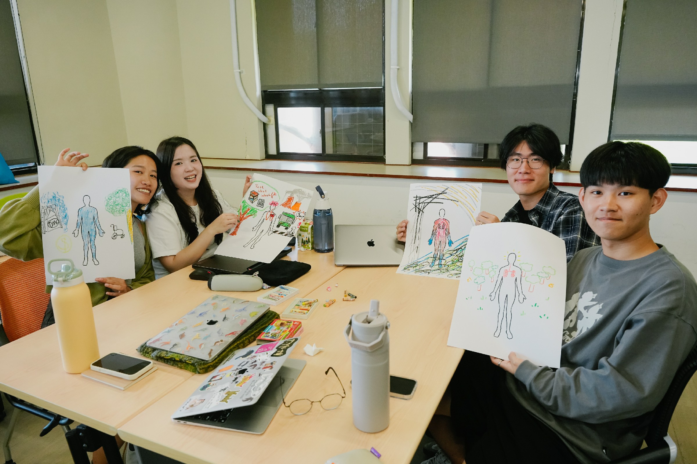 此外,課程透過「身體地圖」工作坊,引導學生以繪畫方式呈現環境風險對身體與心理的影響,從發黑的肺部到受污染的海洋意象,具體化個人與環境的連結,進一步深化對環境正義的討論。
