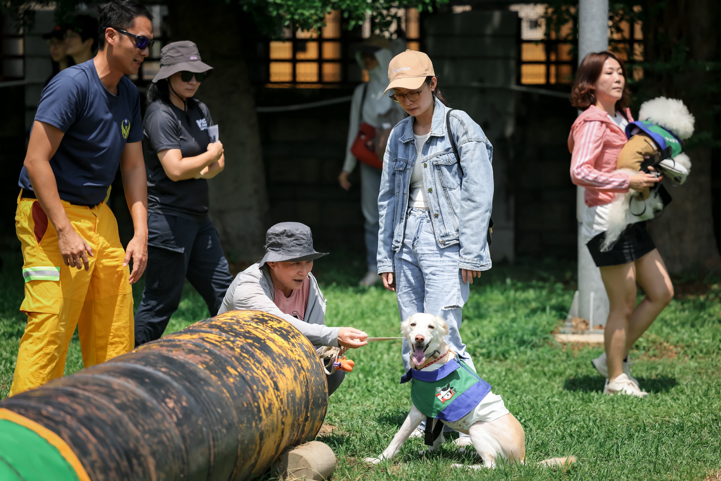 活動現場由專業領犬員示範搜救犬的服從指令與搜索技巧,展現高度紀律與敏捷反應;隨後開放民眾攜犬參與體驗,在專業人員引導下挑戰簡易訓練關卡,模擬搜救情境。完成任務的犬隻皆獲頒「好伴狗狗證明」,讓飼主與毛孩留下兼具教育與紀念意義的體驗。