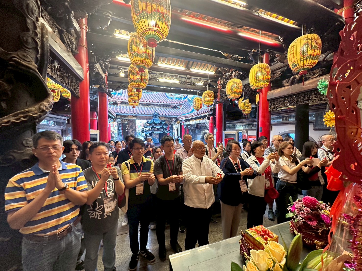 圖說:南科外商團走訪新港奉天宮參與參拜儀式,感受台灣宗教文化氛圍。(圖片來源/南科管理局提供)
